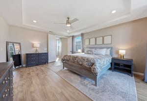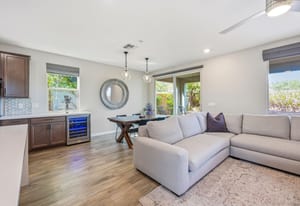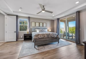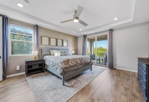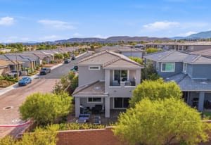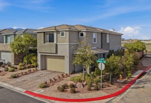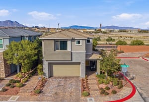 Exquisite former model home designed for elevated everyday living. Designer upgrades set the tone with custom cabinetry, quartz waterfall island, electric fireplace with tile detail, modern lighting fixtures, and luxury flooring throughout. The thoughtful floorplan offers five bedrooms, including a downstairs retreat for guests or multigenerational living. Upstairs, a spacious loft creates the perfect flex space for work or play. The primary suite features a private balcony with sweeping mountain & Red Rock Canyon views and a glimpse of the Las Vegas Strip, ideal for morning coffee or evenings under the cotton-candy sunsets. Situated on a premium corner perimeter lot with only one direct neighbor providing exclusive privacy. The fully landscaped backyard offers room to relax, entertain, or design your dream pool. Prime location in Summerlin South with quick freeway access and minutes to the airport for those trips out of town, or 5 minutes to Downtown Summerlin to enjoy the Farmer’s Market and community activities.