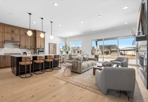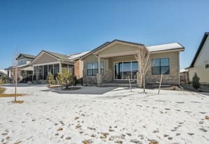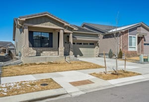 Welcome to Toll Brothers at Heron Lakes, where luxury living meets Colorado's premier PGA rated TPC golf experience. This beautifully designed Whitley Modern Ranch sits on a coveted lot backing directly to open space, offering privacy, and effortless access to miles of recreation. Inside, the home centers around a warm and inviting great room with a sleek gas fireplace and a large sliding door that opens to the expanded covered patio-perfect for year round indoor/outdoor living. The gourmet kitchen is a showpiece, featuring KitchenAid appliances, an enlarged island, and designer finishes selected by the Toll Brothers professional design team. The primary suite is a true retreat, highlighted by a spa inspired Shower with frameless glass and dual shower heads. A full unfinished basement with rough in plumbing offers exceptional storage or future expansion potential. This low maintenance, lock and leave home includes front yard landscaping and snow removal through the HOA. Residents enjoy world class amenities: a resort style pool, fitness center and studio, clubhouse, restaurant, miles of trails, plus access to fishing and boating on the community lakes. This is Colorado living at its finest-luxury, recreation, and the unmatched lifestyle of Heron Lakes.