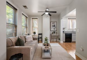This beautifully updated 1-bedroom, 1-bath main floor condo lives larger than expected with its open layout, thoughtful upgrades, and natural light throughout. The kitchen features granite tile countertops, freshly painted cabinets, and newer stainless-steel appliances, seamlessly connecting to the dining and living areas with light hardwood floors.