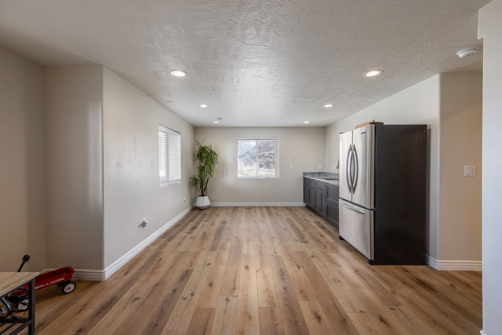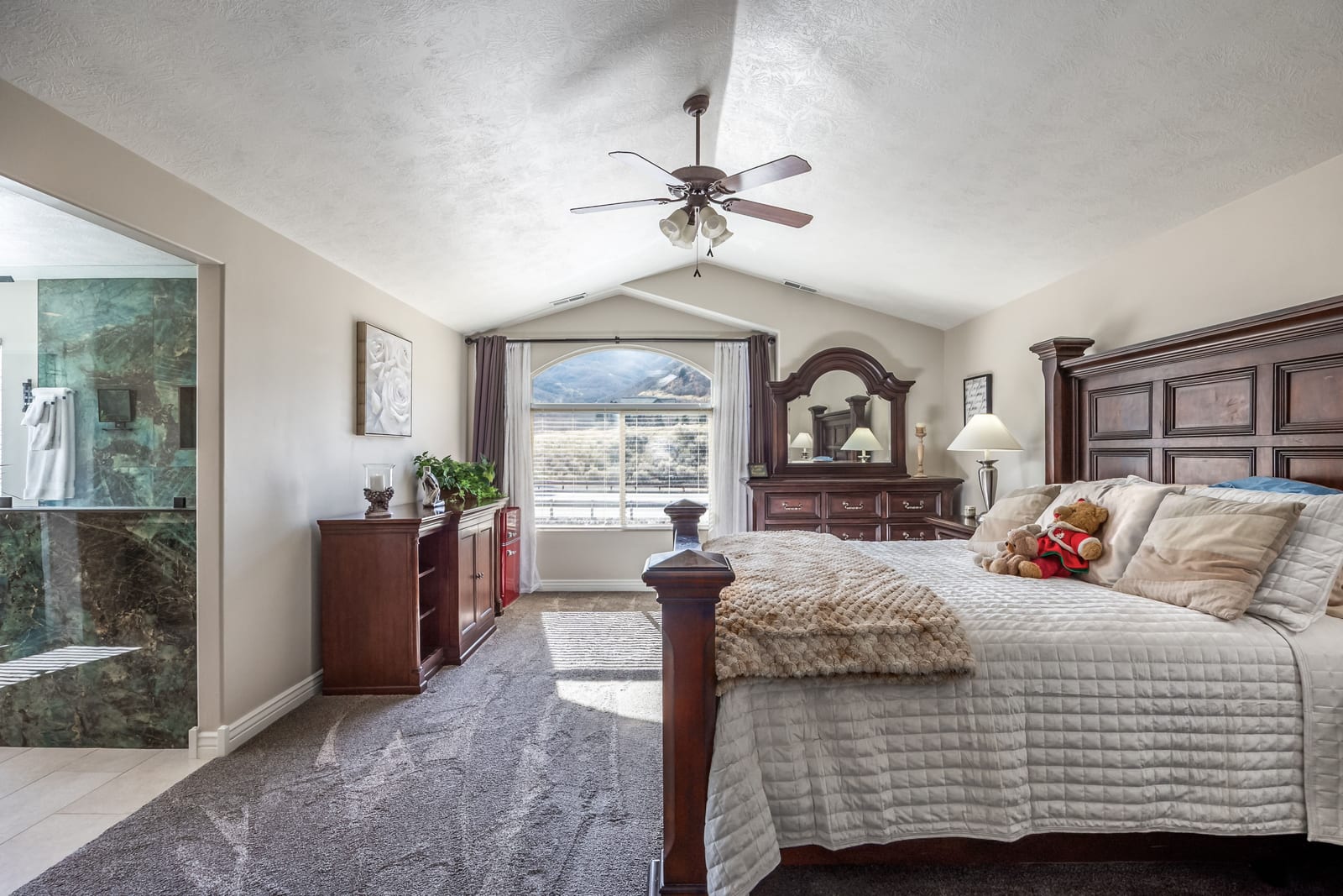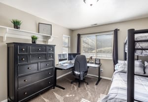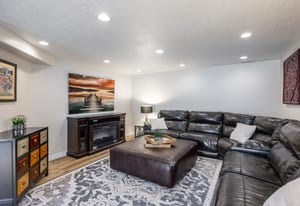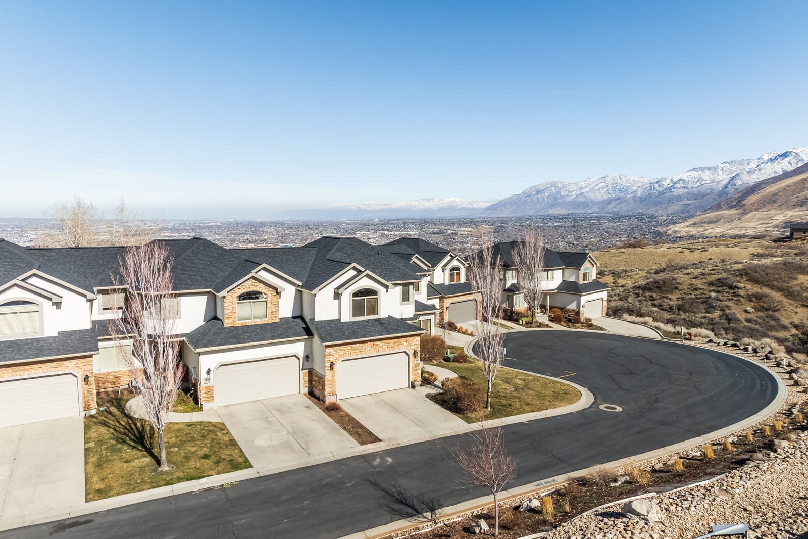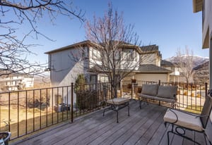 Perched high on the coveted East Bench of Draper, this exceptional townhouse offers the perfect blend of luxury, space, and location. Nestled near the world-class trails of Corner Canyon, you’ll enjoy instant access to premier mountain biking and hiking right outside your door—all while being just a quick 2-minute drive to I-15 for effortless commuting. Boasting nearly 3,500 square feet of beautifully finished living space, this home welcomes you with a dramatic entry featuring soaring double-height ceilings and a stunning banister. The remainder of the main floor showcases 9-foot ceilings, enhancing the open and airy feel throughout. The impressive kitchen is both stylish and functional, featuring painted cabinetry with updated hardware, stainless steel appliances, durable LVP flooring, and seamless flow into the breakfast nook and spacious family room—perfect for gathering and entertaining. A formal living room/den and convenient half bath complete the main level. Upstairs, you’ll wake up to breathtaking mountain views and find four generously sized bedrooms, along with a guest bath offering double sinks and a full tub/shower combination. The luxurious Primary Suite is a true retreat, complete with a newly remodeled spa-like bath featuring a large soaking tub, double sinks, freshly painted cabinetry with new hardware, and a gorgeous oversized tile shower with Euro glass. The primary suite also offers an impressively large walk-in closet, thoughtfully designed with space savers for shoes and accessories. The fully finished basement expands your living space even further with LVP flooring throughout, a full bath, an additional bedroom, and a fabulous great room. A convenient kitchenette makes it ideal for guests, entertaining, or multi-generational living. Additional highlights include a spacious two-car garage with ample storage and a private back deck—perfect for evening barbecues while taking in sweeping valley views. This East Bench gem combines stunning scenery, thoughtful updates, and unbeatable trail access—don’t miss your opportunity to call it home!