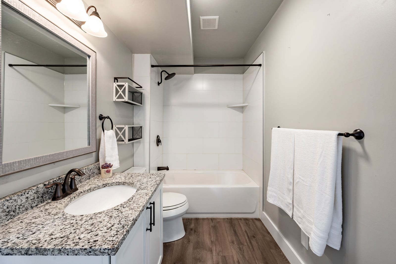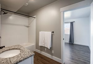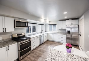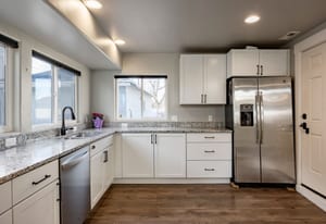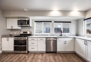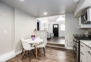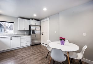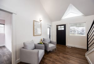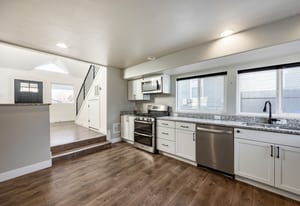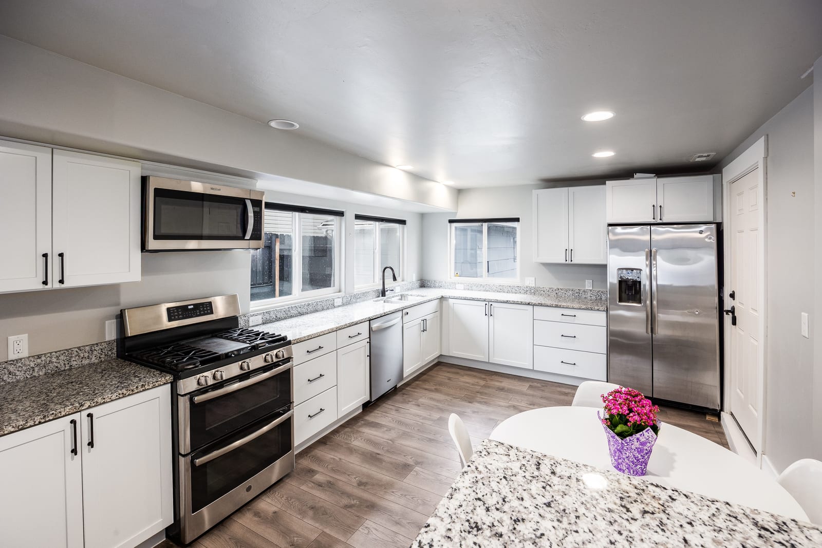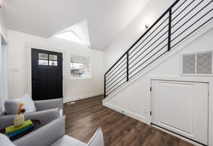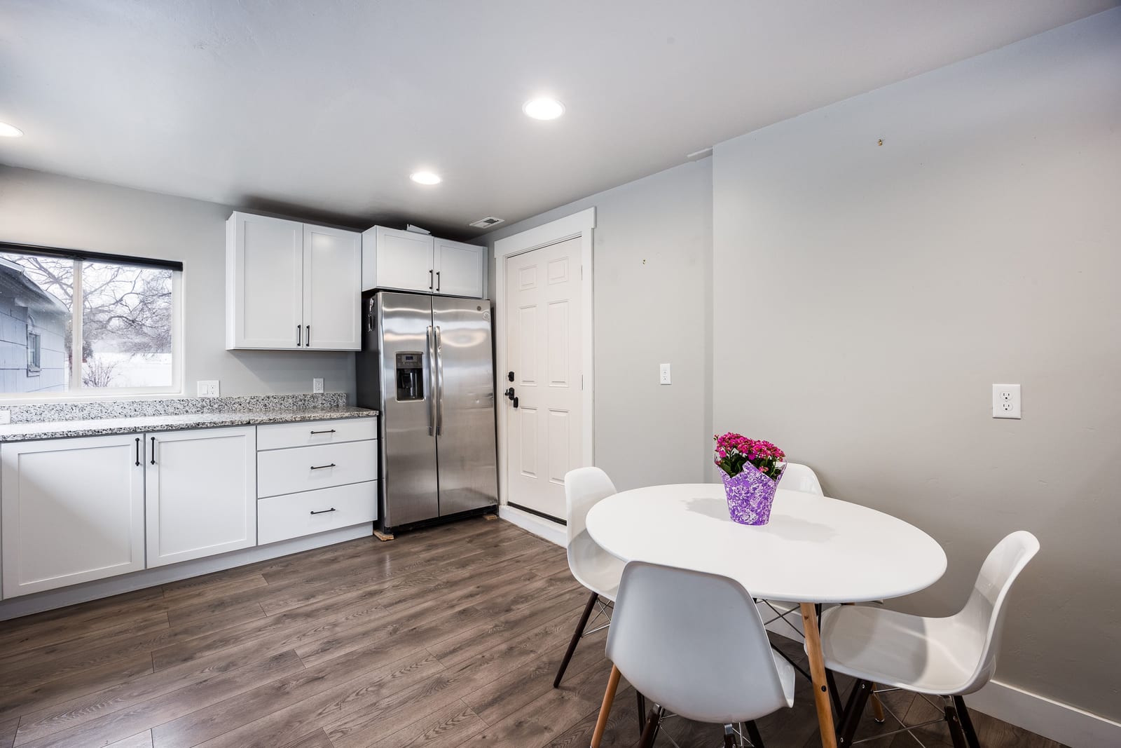 Modern lines, vaulted ceilings, and an open loft give this South Salt Lake home architectural presence you don't typically see at this price point. The kitchen is crisp and functional with white shaker cabinetry, granite counters, stainless appliances, and excellent natural light. Black iron railings and warm flooring add contrast and character throughout. Out back, the tiered yard was designed for gathering - a sunken concrete lounge, defined garden beds, native plantings, fruit trees, and space to actually entertain. Detached garage with room for storage or workshop. Convenient location with quick access to downtown, Sugar House, and I-80.