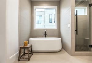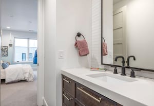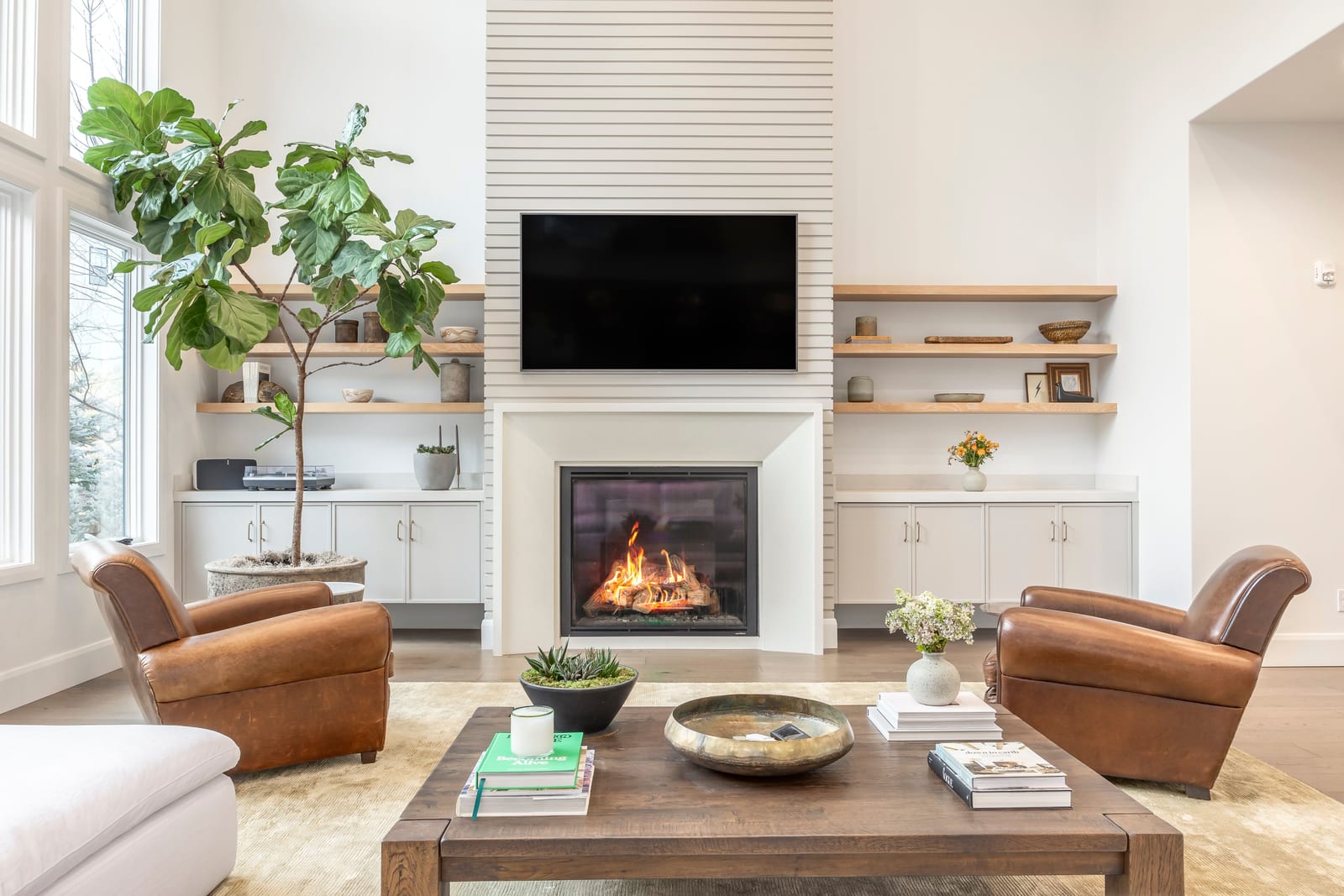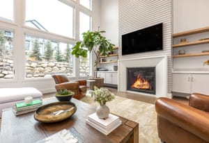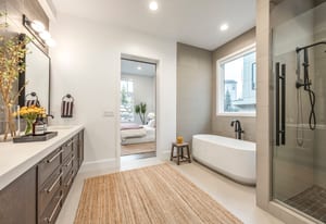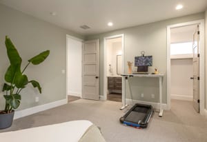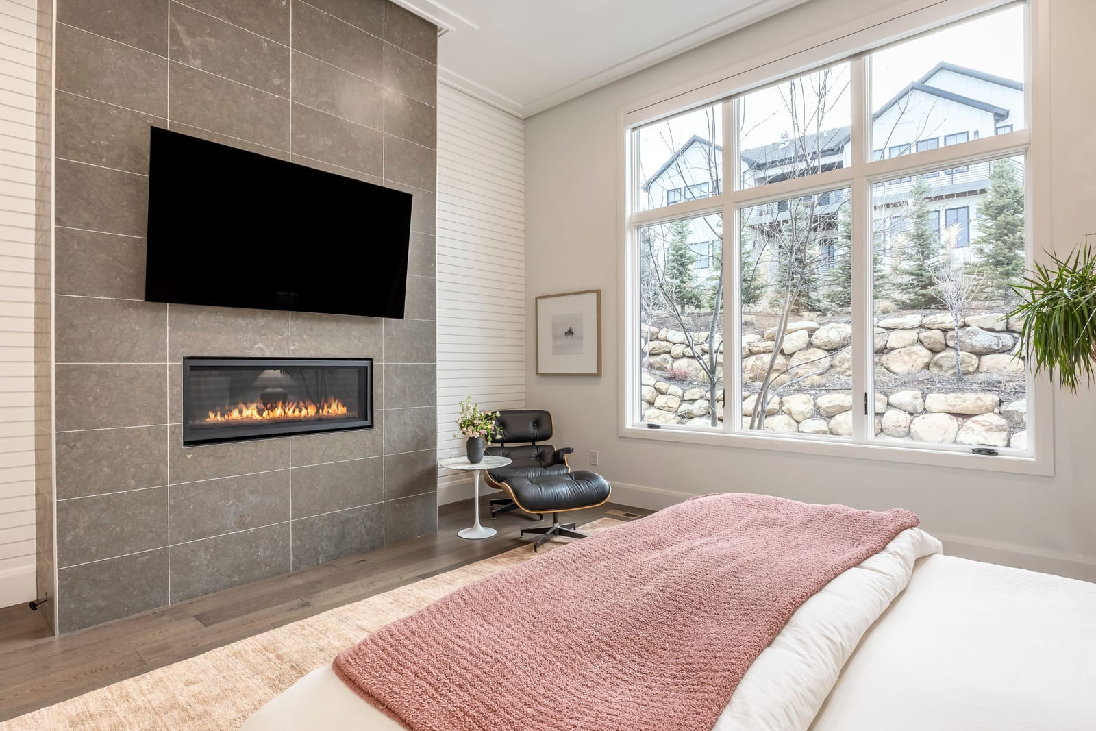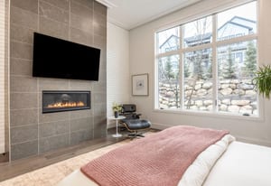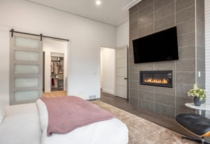 The owner’s suite offers a true retreat with its own fireplace, freestanding soaking tub, and smart programmable shower system.