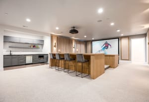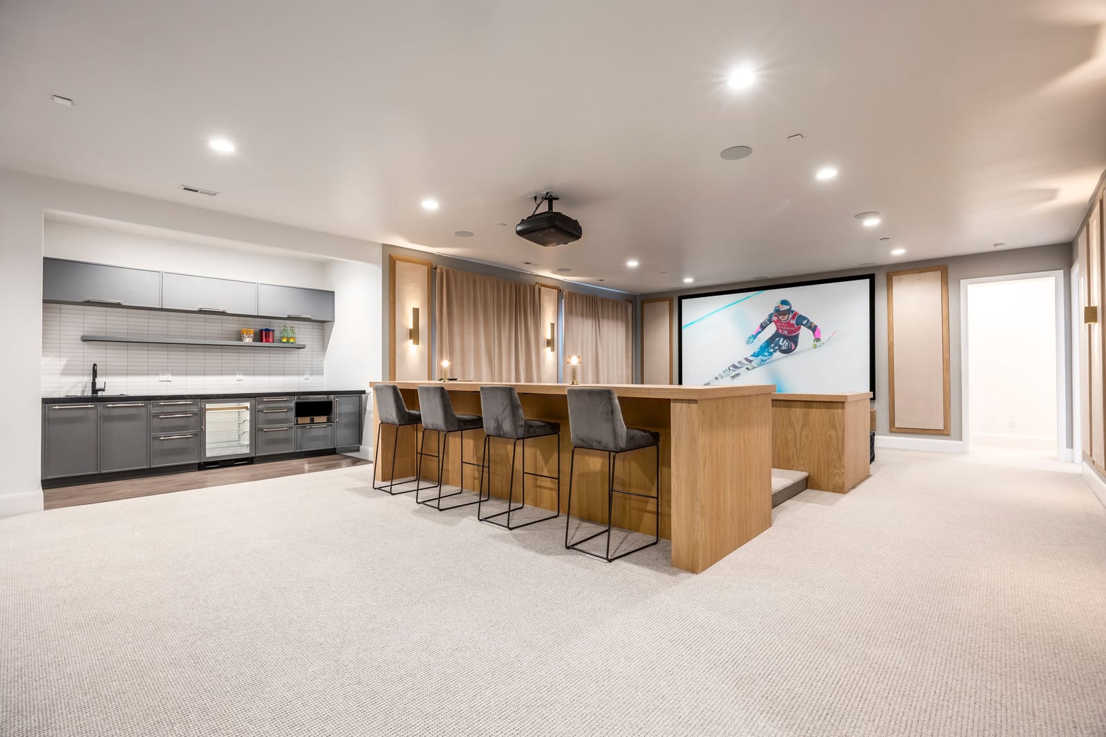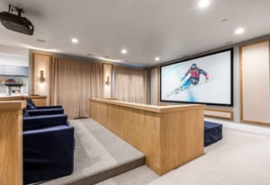 A standout feature of the home is the custom private theater, designed for a truly immersive cinematic experience. Sound-dampening panels, integrated theater lighting, and carefully tuned acoustics create an exceptional space for movie nights, game days, or entertaining.
