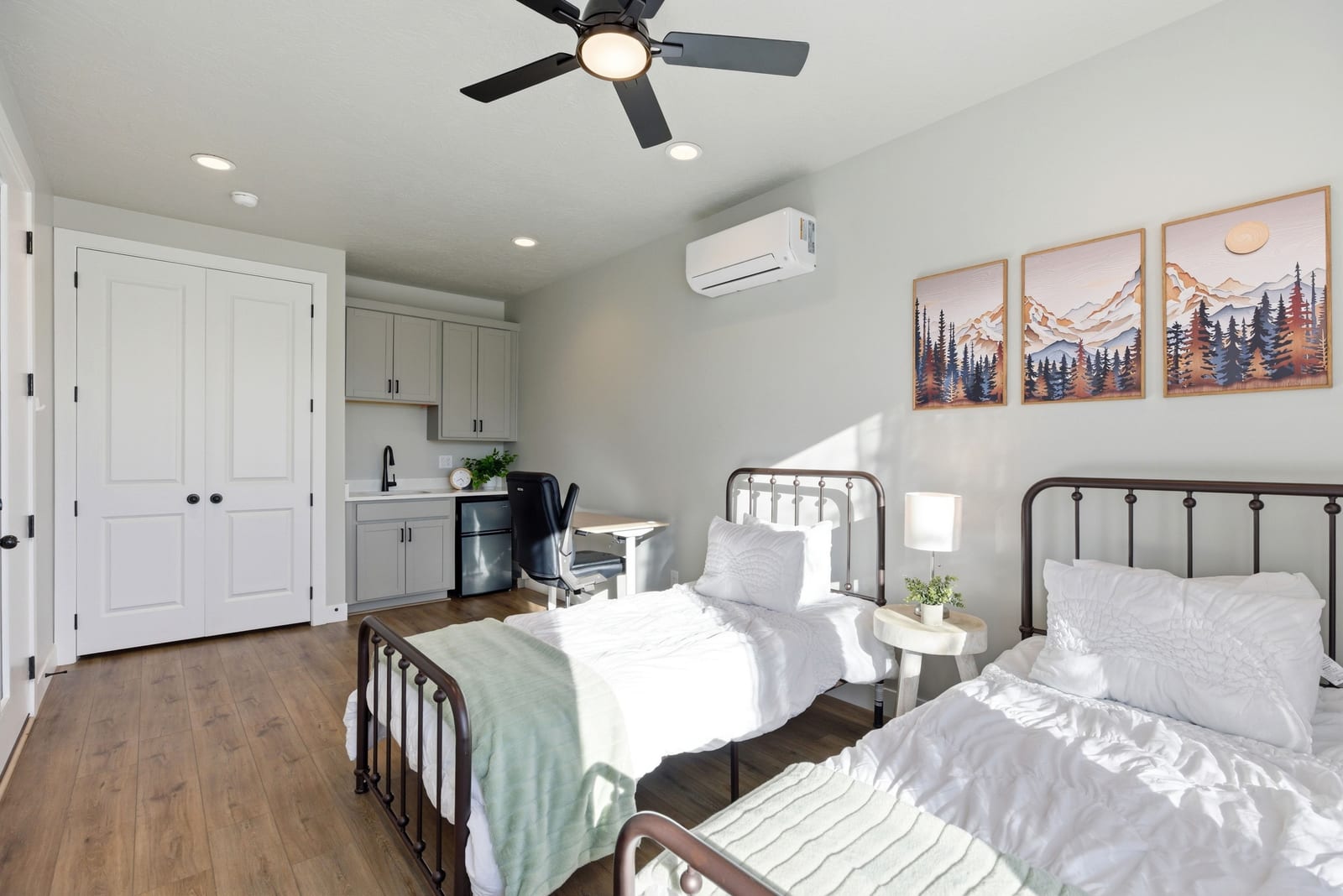 This beautiful home has 3 bedrooms, 3.5 baths, including a private casita with separate heating/AC unit is ideal for guests, rental income, or multi-generational living. Perfect for a primary residence or a second home with the low maintenance yard, including high-quality turf. The block wall has been extended for privacy and painted to provide a pleasing outdoor space. The cool, relaxing community pool is nearby. Many upgrades including LVP flooring, water softener/RO system, epoxy garage floor, gourmet kitchen, and a shed for extra storage.