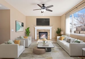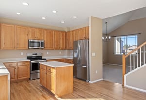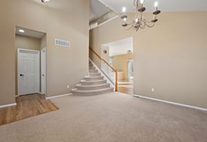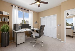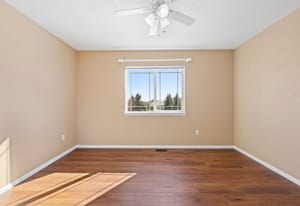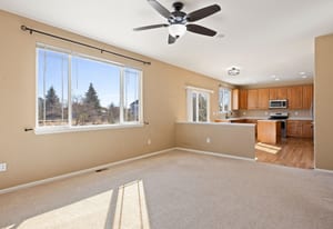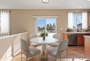 Unlike every other home, this two story, five-bedroom home is set on a rare, half-acre cul-de-sac lot. Defined by the huge custom-landscaped backyard, an upper floor that brings together four of the home’s bedrooms with mountain views, and a flexible main-floor bedroom or office, this home delivers space to live and play. As you enter, a front room with 18’ ceilings sets the tone, flowing through the sunlit eat-in kitchen into the cozy living room. The kitchen is complete with hardwood floors, stainless-steel appliances, and a sliding door walkout to the patio, and the living room gathers around a stone fireplace with fresh carpet. A flexible bedroom sits just around the corner, with an ensuite, creating options for an office or guest space.