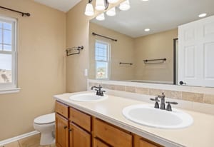 The upper level completes the picture with the other four bedrooms, including the primary bedroom with mountain views beyond, dual walk-in closets, and a relaxing ensuite with walk-in shower and soaking tub. Each secondary bedroom offers a newer ceiling fan, and the shared bathroom is complete with granite countertops and a tub/shower with detachable showerhead. In the finished basement, built in features offer storage, and carpet connects a flexible space ready for cozy movie nights or early fitness mornings. Whether spotting wildlife on the trail just behind the home or walking less than a mile to nearby schools and parks, here, convenience meets Colorado lifestyle in Castlewood Ranch.