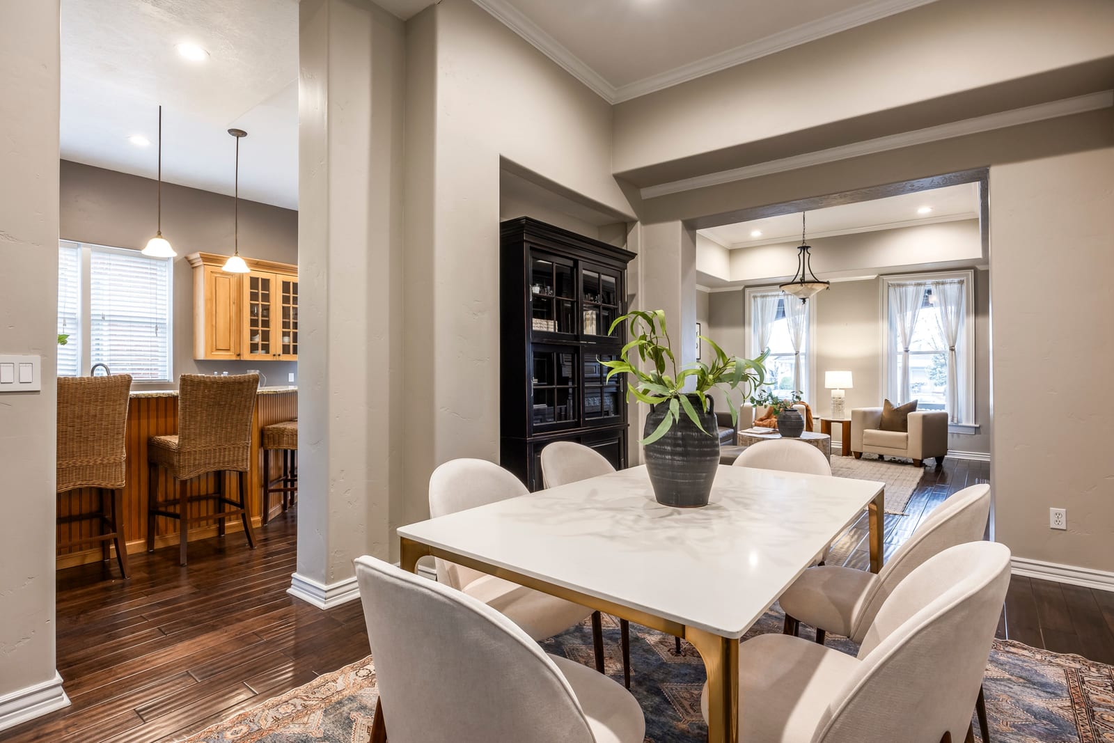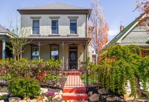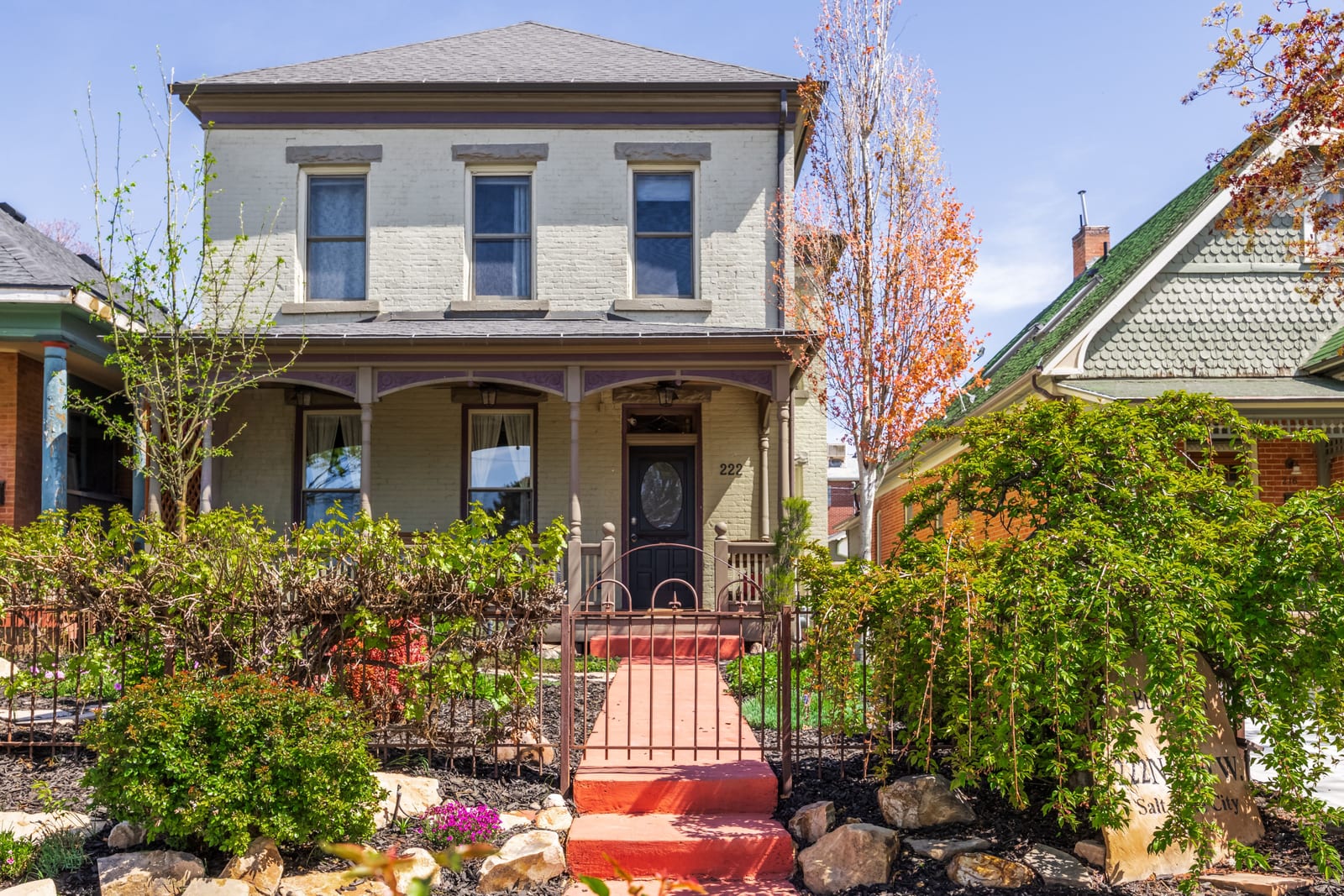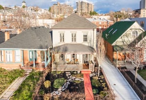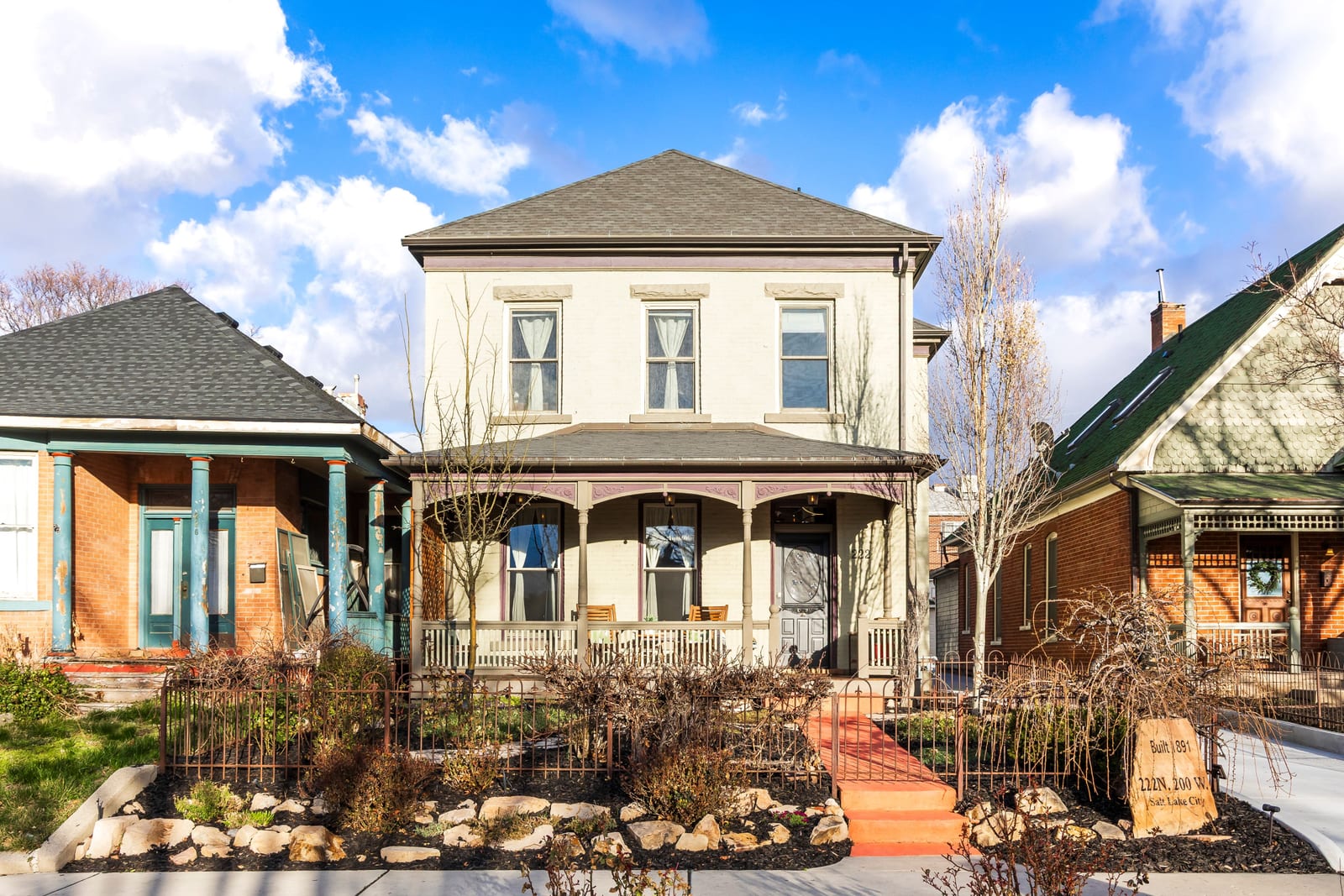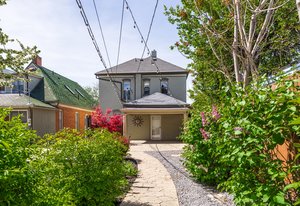 Located on a picturesque, tree-lined street in Salt Lake City's vibrant Marmalade neighborhood, this beautifully restored two story residence offers a rare blend of historic character and modern refinement. Thoughtfully renovated from top to bottom, inside and out, the home has been carefully preserved to honor its architectural heritage while seamlessly incorporating contemporary comforts. The home reveals its timeless appeal upon entry. The front sitting room is defined by soaring twelve foot ceilings and elegant built-ins that create both presence and warmth. Just beyond, the dining room features exposed brick, adding texture and authenticity to the gathering space. The kitchen has been thoughtfully reimagined with custom cabinetry, bar seating for three, stainless steel appliances and a generous walk-in pantry, offering both beauty and functionality. A stylish half bath with exposed brick detail and a well designed laundry and mud room with additional cabinetry complete the main level. Upstairs, the spacious primary suite serves as a private retreat, complemented by a custom double vanity and Euro glass shower. Two additional bedrooms and a Jack and Jill bath provide flexibility for family or guests. The lower level offers a substantial storage area along with updated mechanical systems, including HVAC, electrical, PEX plumbing and a water filtration system, delivering peace of mind and long term value. Outdoors, the backyard is a true urban sanctuary, anchored by a covered stamped concrete patio ideal for entertaining or quiet evenings at home. The oversized two-car garage is enhanced by a finished office above, complete with mini split HVAC, LVP flooring and recessed lighting. The garage is also EV charger ready. Located just minutes from the Delta Center and within close proximity to Salt Lake City's dining, cultural attractions and freeway access, this exceptional home offers a rare opportunity to experience historic charm elevated by thoughtful modern living.