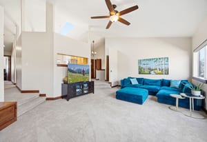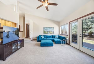 Beautifully maintained 3-bedroom, 3-bath residence offering thoughtful updates and effortless indoor-outdoor living in Eagle's desirable Terrace neighborhood. The light-filled main level features vaulted ceilings with two skylights, a custom built-in fireplace, and French doors that open from both the living room and primary suite to the outdoor spaces. Designed for the ease of main-level living, all three bedrooms are located on the primary floor.