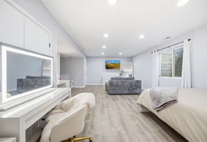 A comprehensive 2020 renovation introduced new carpet on the main level and stairs, French doors to the primary suite and living area, custom blinds, solid wood doors and trim, and tastefully updated bathrooms. The home has been further enhanced with a DaBella composite shingle roof installed in 2024. The finished lower level provides versatile additional space ideal for a media room, home office, fitness studio, or potential fourth bedroom.