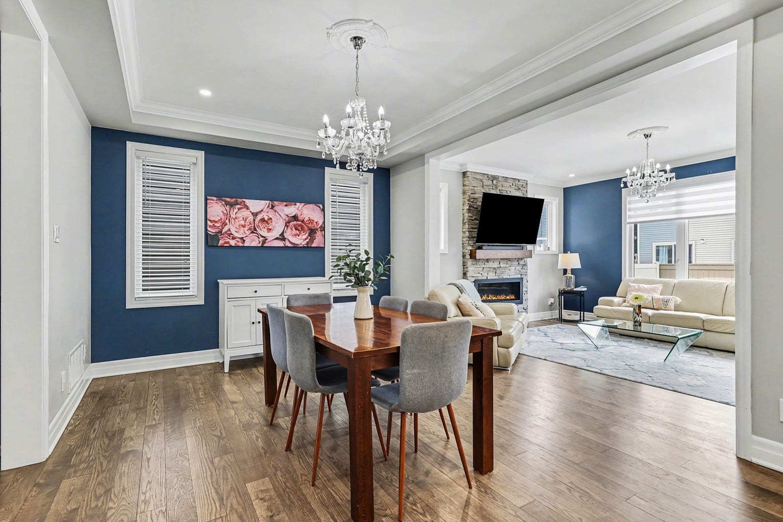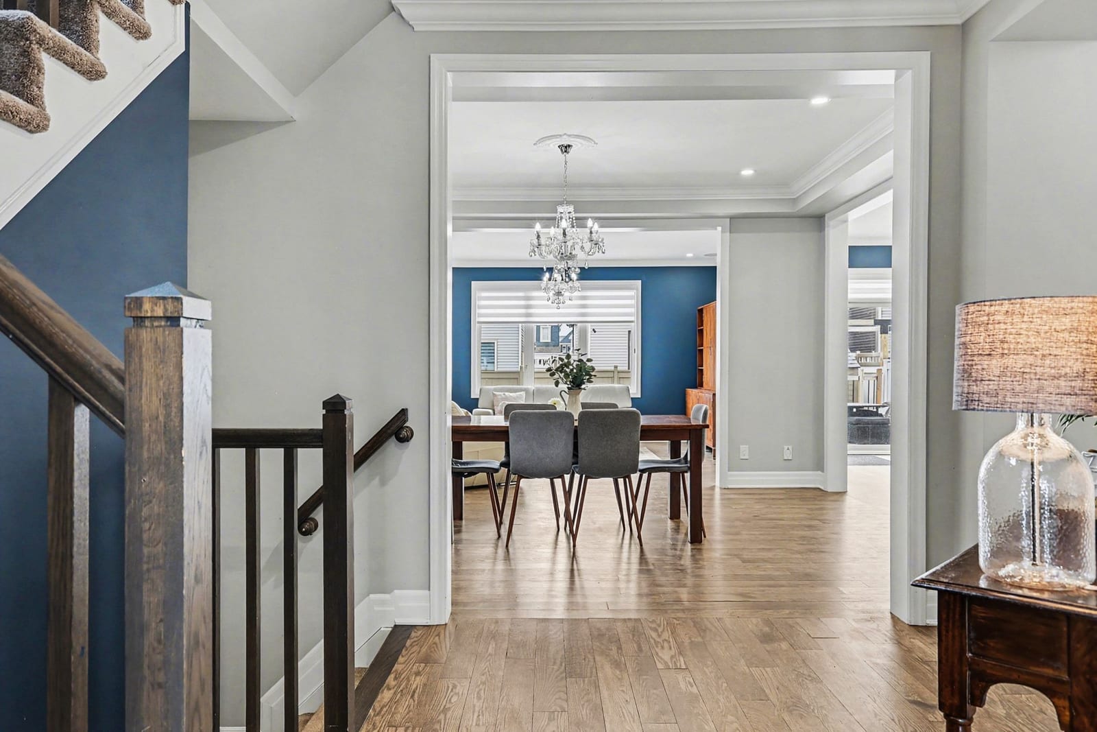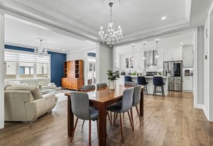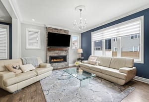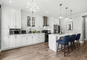 This sought-after model offers over 2,400 sq ft of open-concept living space, featuring elegant architectural details such as 9-foot ceilings on both levels, 8-foot doors, and crown mouldings throughout, creating a bright and refined atmosphere.