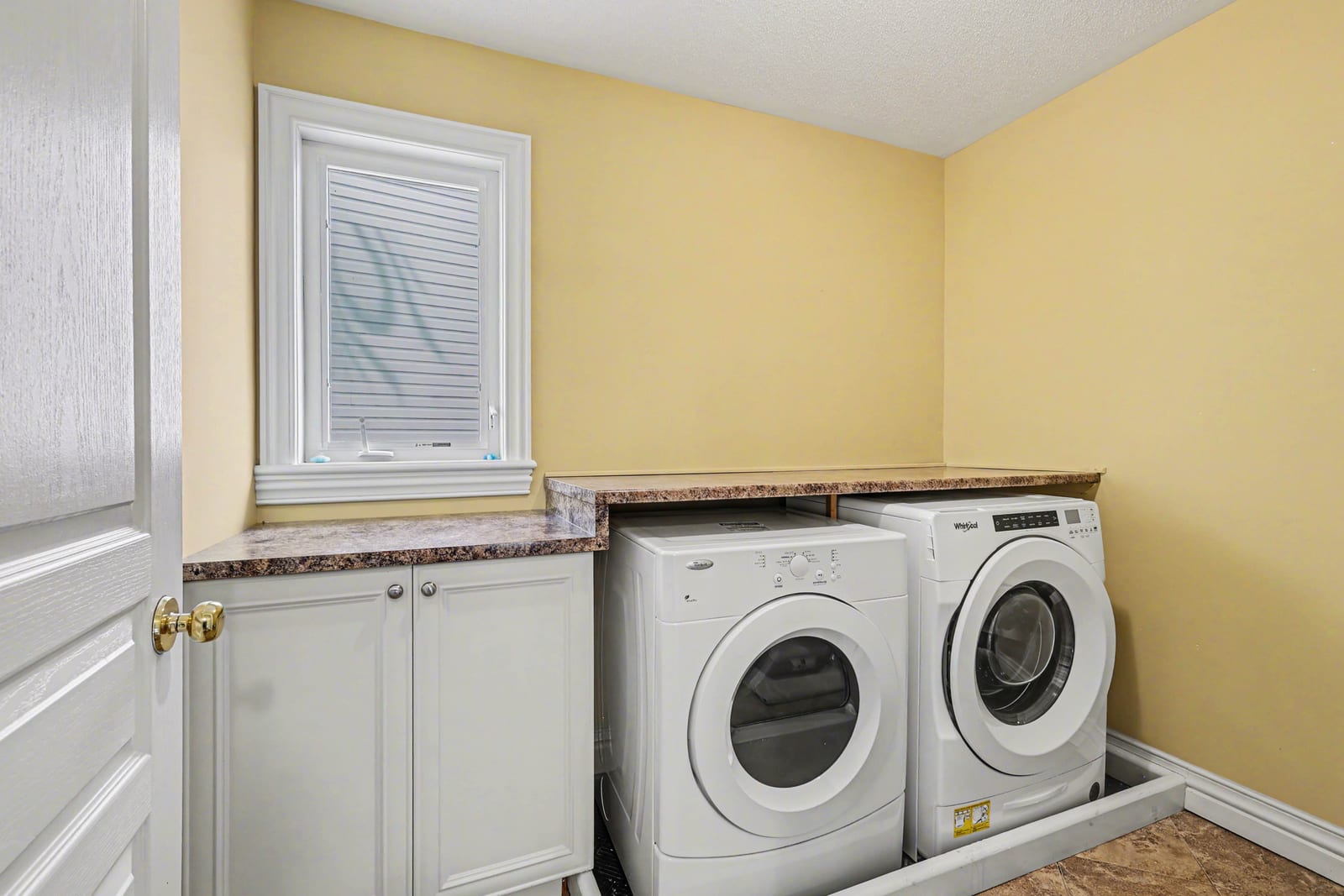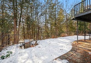 Patio doors from this level lead to the private and serene backyard. With no rear neighbours, this outdoor space offers wonderful privacy and an inviting setting to enjoy the warmer months, whether relaxing on the stone patio or entertaining family and friends.