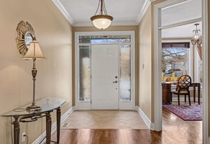 Designed with family living in mind, the mudroom offers two oversized closets and convenient access to the double car garage. A dedicated main floor office is a welcome feature, complete with a large window overlooking the quiet street. A stylish powder room completes this level.