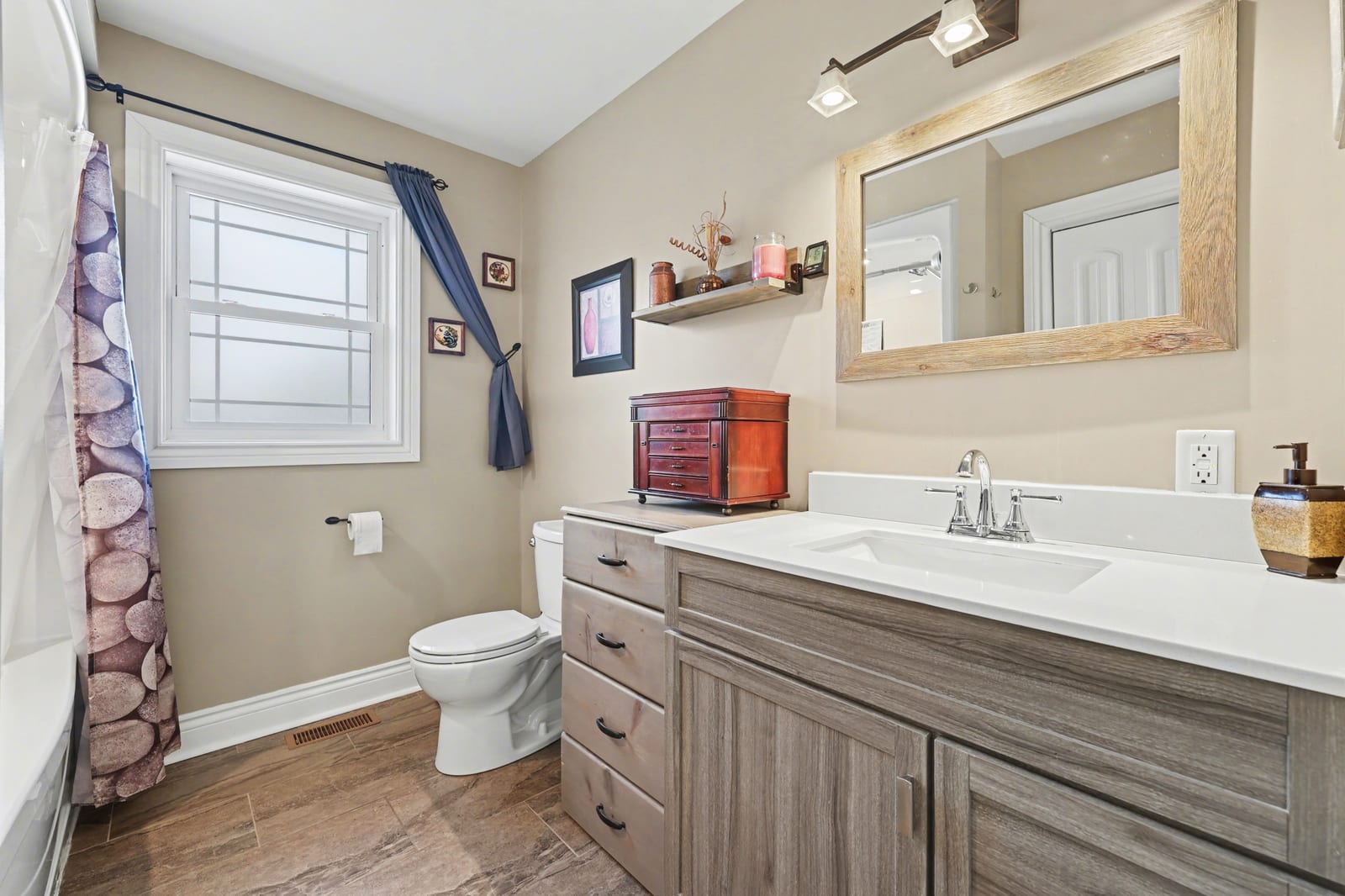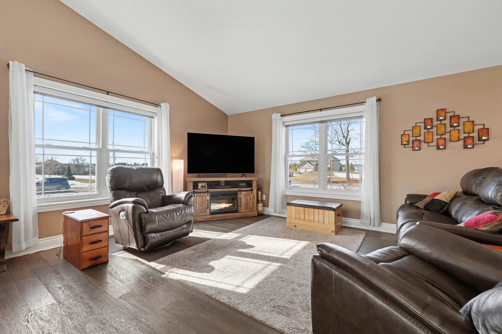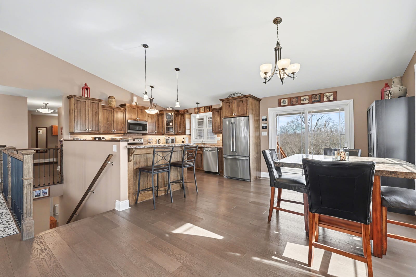 Welcome to this wonderful executive style bungalow in Montague Estates that neither lacks in space or high-end finishes. Just minutes outside the growing town of Smiths Falls you have that touch of country that so many desire in an established neighbourhood with executive style homes. A perfect place to raise a family or enjoy the home of your dreams. As you enter, the home greets with a grand open concept living/dining & kitchen. The living room has vaulted ceilings that lead into the dining area & kitchen as well. The dining area provides access via patio doors to the covered back deck with pot lighting. The back deck where you can enjoy morning coffee in the privacy of your backyard with no rear neighbours. Back inside the gorgeous kitchen offers plenty of storage, ss appliances & a convenient breakfast bar. Beautiful vinyl plank flooring runs through out most of the main floor. Down the hall is the main floor laundry, 2nd full bath, generous sized 2nd bedroom, mud room area with garage access and finally the spacious master suite with walk-in closet & 4 pc ensuite & linen closet. The L/L is home to an oversized family room with cozy wood pellet stove, expansive 3rd bedroom & 2pc bath. Potential for a 4th bedroom. There is also a large utility/storage room as well as walk-out to the garage. The 30' x 28' garage gives you plenty of space for vehicles as well as room for extra toys or storage. Make this your new home you won't be ...