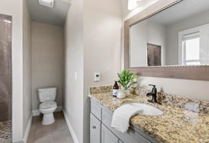 On nearly 9,500 square feet of lot, there's room to breathe. The main-level bedroom handles whatever you need it to: guest room, office, workout space. Upstairs, the primary suite has mountain views, walk-in shower, jet tub, and granite countertops. Three more bedrooms, a full bath, laundry where it belongs (upstairs!), and a loft that works as a reading nook, studio, or whatever you’d like.