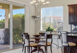 The kitchen includes a walk-in pantry, stone backsplash and granite countertops. Throughout the home you'll find quality window coverings.
