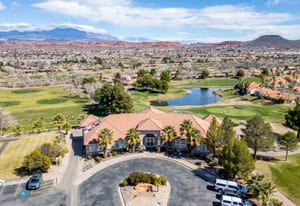 Experience refined desert living in this beautiful former model home located in the highly sought-after Sunbrook community. This home comes fully furnished and sits directly on the golf course, capturing breathtaking panoramic views of Pine Valley Mountain and Snow Canyon.