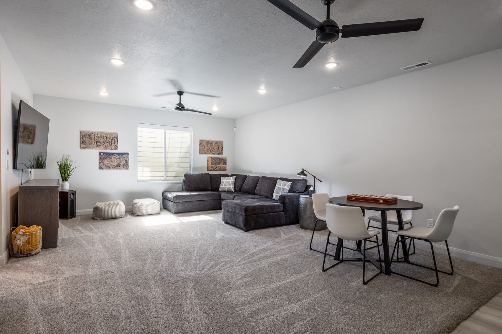 Set against the breathtaking backdrop of Park City, this home embodies refined mountain living with effortless sophistication. Appropriately named, the views here are so extraordinary they could not be painted more perfectly, an artful setting that lives up to its address. This four-bedroom, three-bathroom residence with a generous three-car garage offers the rare convenience of main-level living, thoughtfully designed for both comfort and elevated entertaining. Soaring ceilings and expansive windows invite the landscape in, filling the home with natural light and framing scenery that feels like a masterpiece in every season. The seamless flow between the living, dining, and kitchen spaces creates an atmosphere equally suited for intimate gatherings or larger-scale entertaining. The lower level unfolds as a private retreat, complete with an oversized family room and a well-appointed wet bar--ideal for refined après-ski evenings or relaxed summer gatherings. Outdoors, a covered patio captures sweeping, picture-perfect vistas, complemented by a low-maintenance yard with partial turf and a WiFi-controlled irrigation system for effortless upkeep. Located just minutes from Historic Main Street in Park City - home to celebrated dining, galleries, and boutiques - and within easy reach of downtown Salt Lake City and Salt Lake City International Airport, this residence offers seamless access to world-class skiing, scenic trail systems, championship golf, and year-round recreation. An inspired offering where luxury, landscape, and lifestyle are beautifully composed.