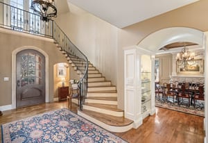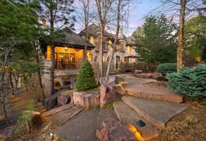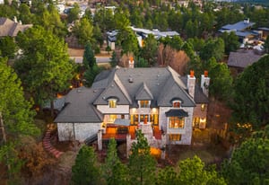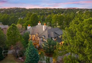Tucked among towering pines on a quiet cul-de-sac in the prestigious Village at Castle Pines, this remarkable estate captures the essence of refined Colorado living, where privacy, views, and timeless design come together effortlessly. A winding approach sets a memorable tone, revealing sweeping golf course vistas and a setting that feels worlds away. Inside, the home unfolds with a natural, inviting flow. Sunlit living spaces connect seamlessly—from the elegant living and dining rooms to the warm, welcoming family room, each framed by walls of glass that bring the outdoors in. Rich wood floors, soaring ceilings, intricate millwork, and six fireplaces create a sense of depth, warmth, and understated luxury. At the center, the kitchen is both striking and functional, featuring custom cabinetry, walnut countertops, an expansive island, and a 60-inch Wolf gas range. Dual butler pantries make entertaining feel effortless, while the breakfast nook is perfectly positioned to take in peaceful, tree-lined views. Upstairs, a dramatic loft overlooks the main level and leads to a serene primary retreat with private balcony access, a spa-inspired bath, and a custom walk-in closet. Two additional en-suite bedrooms offer comfort and privacy for guests. The lower walk-out level adds flexibility with a refined office, an additional en-suite bedroom, and a versatile bonus space ideal for fitness or recreation. Outdoor living is equally compelling, with layered patios and decks designed for both lively gatherings and quiet evenings surrounded by nature. With a three-car garage and access to exclusive community amenities, this is a home that feels both elevated and effortlessly livable.