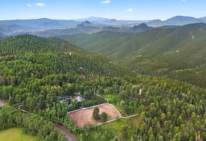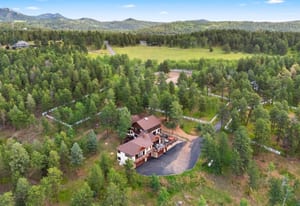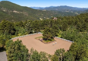 For those longing for a life where the mountains meet the sky and the trails stretch for miles, this is your ‘Cowboy Take Me Away’ moment. Where wide-open pastures and rugged beauty define the lifestyle, this property offers a legacy ranch experience just 45 minutes from Denver. The extraordinary private ranch home in Conifer is a chalet-style residence of stucco, cedar & stone that spans 5779 sf. You'll experience a seamless blend of rustic elegance & sophisticated craftsmanship throughout the thoughtfully designed living space on this secluded 36-acre retreat. Agricultural zoning enhances the appeal, with a 6-stall barn, paddocks & riding arena, perfect for equestrians. The meticulously maintained grounds showcase Colorado's natural beauty with vibrant wildflowers, graceful aspen trees, and towering pines. The home itself was completely renovated including a 2000+ sf expansion in 2010. The main level, pegged oak floors, and beams were originally finished in rich ebony stain & expertly sanded to reveal their gorgeous, rugged, natural character. The gourmet kitchen features high-end appliances & black honed granite countertops – in an open-concept style it offers easy access to a built-in breakfast nook and formal dining room. The great room offers soaring ceilings, a massive wood-burning fireplace, rustic exposed beams, and an impressive wall of windows that frame breathtaking panoramic views stretching from Pike's Peak to the south across to the Continental Divide to the west. The layout includes 3 bedrooms on the upper level, while the main floor houses the primary suite complete with enormous walk-in closet, laundry room, office and en suite bathroom - the soaking tub capturing the magnificent mountain vistas. Add'l entertainment spaces include a charming family room with wood-burning stove and wet bar. This property offers unparalleled tranquility while maintaining convenient access to Conifer's amenities, world class skiing and Denver International Airport.