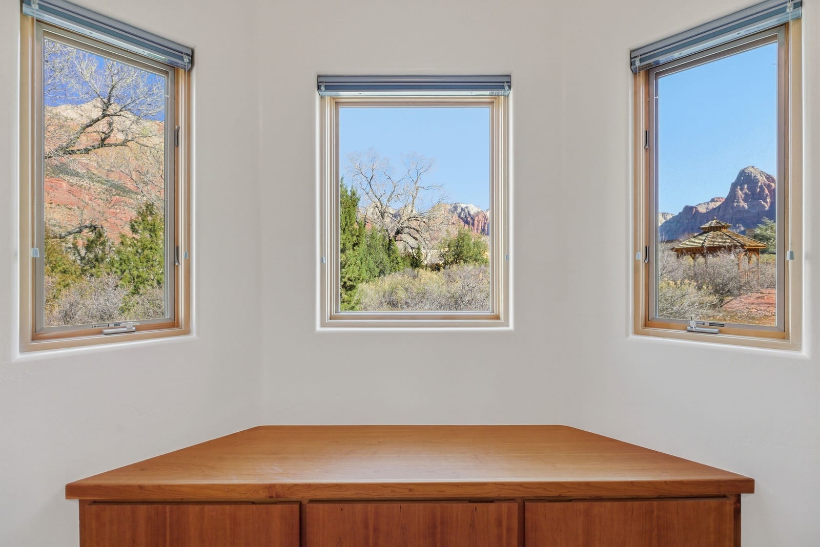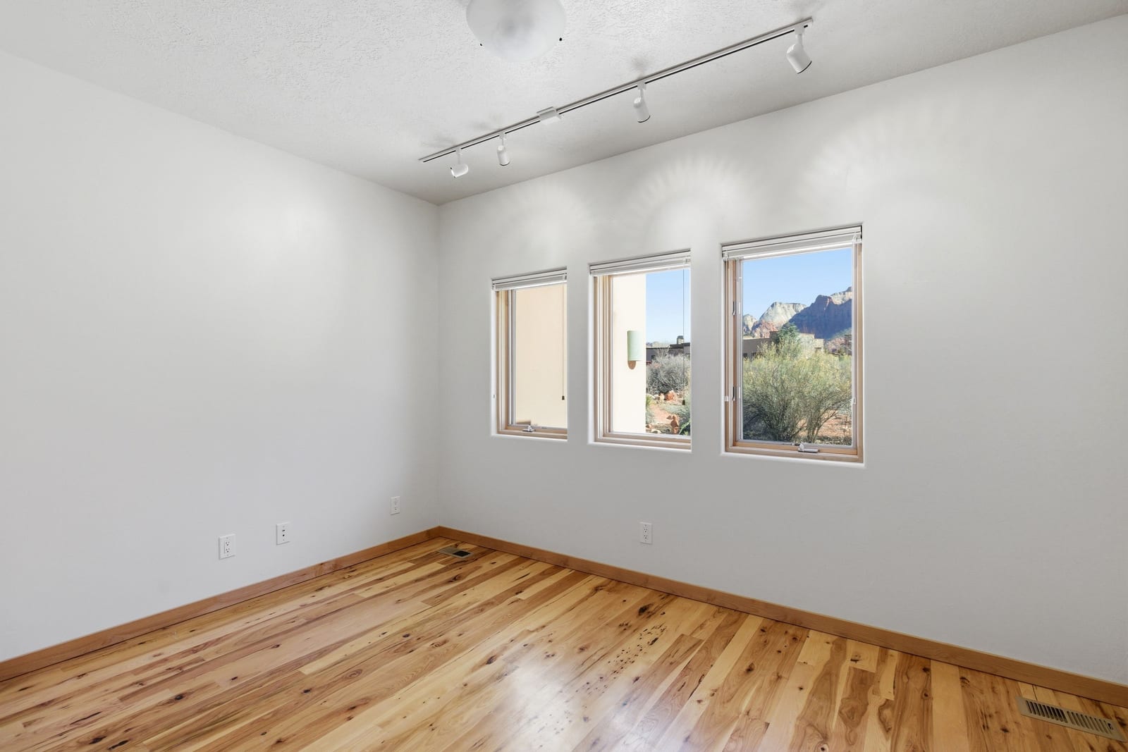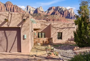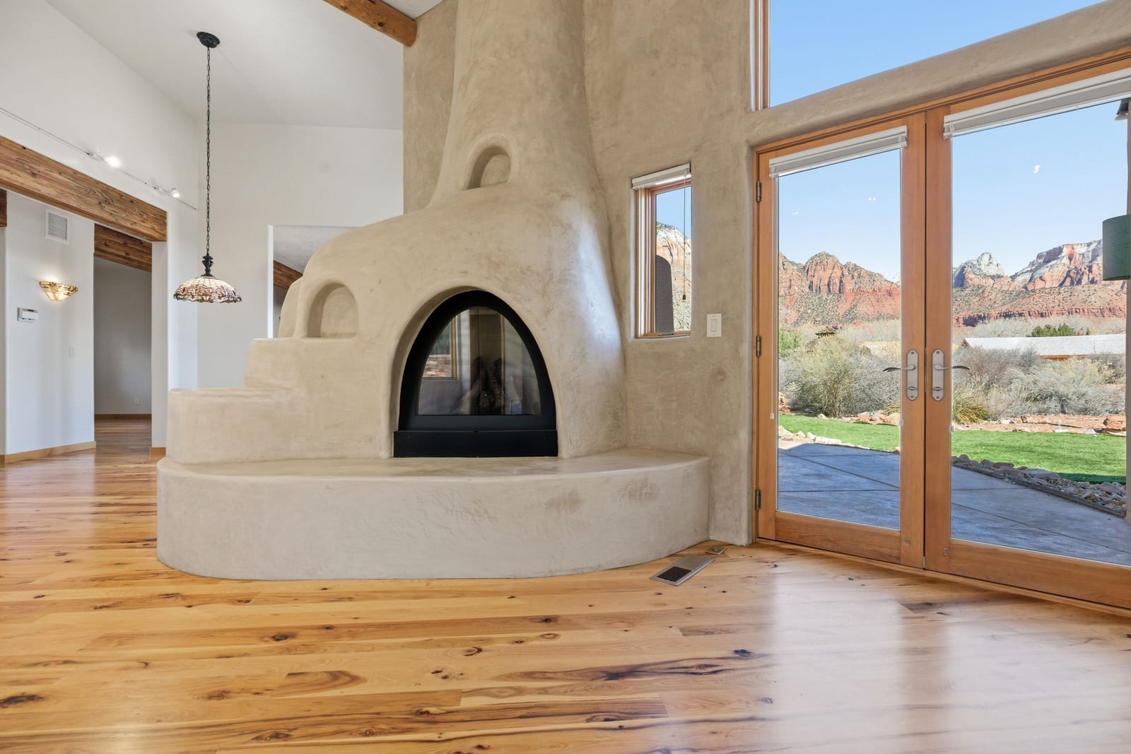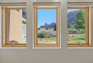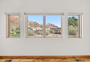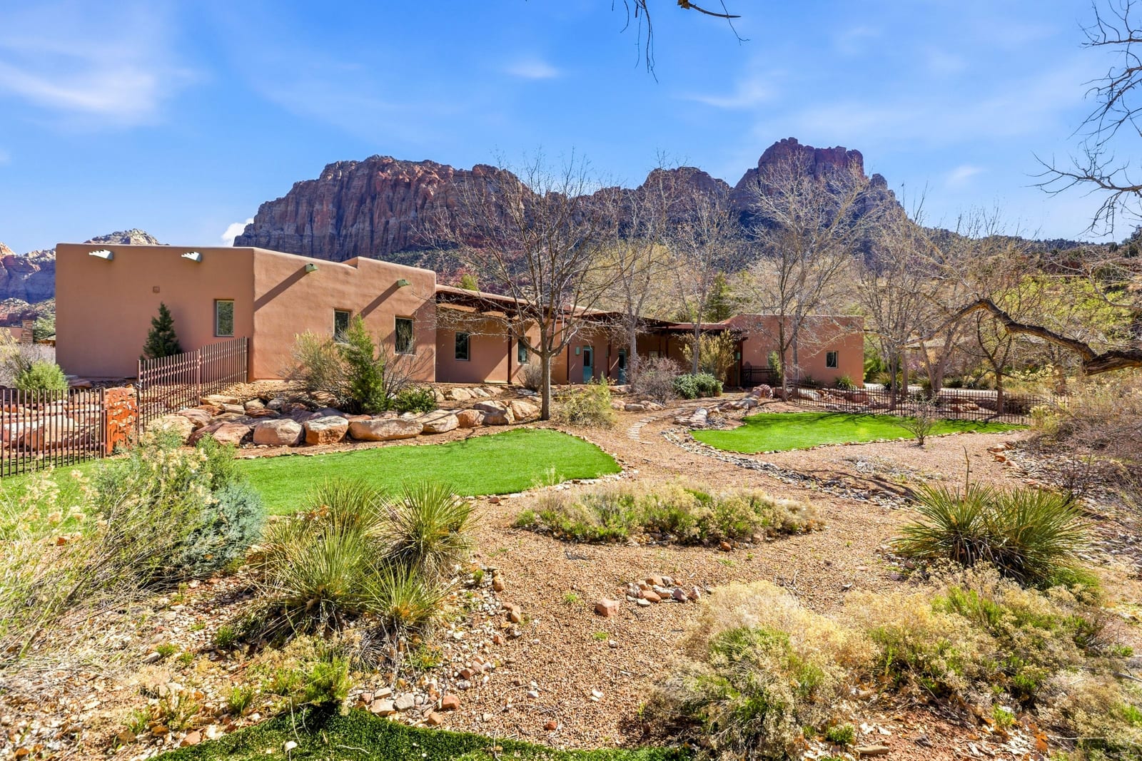 Southwestern Country Home along the Virgin River with additional 1-AC buildable river front lot in Springdale. Two generous main suites on opposite ends of the home offer comfort and privacy. The central area includes the dining room, kitchen, living room and office. Two additional bedrooms and a large versatile workroom offer plenty of additional space for family, guests, or creative pursuits. Set on three lots, the property offers front and back patios perfect for enjoying breathtaking views of Zion and the soothing sounds of the Virgin River. Built with 13'' insulated concrete walls and a Geo-exchange HVAC system, this home is quiet and cost efficient.
