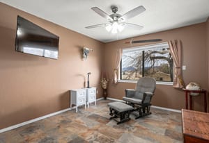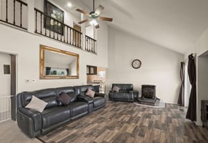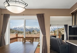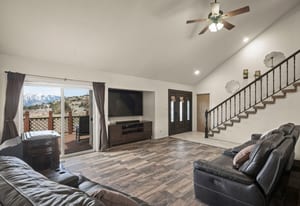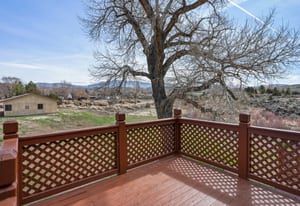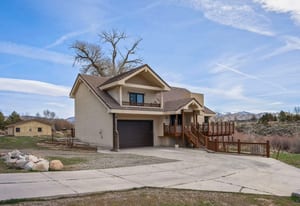Discover your private rural retreat on 3.2 acres of serene, usable land, perfectly positioned to capture stunning mountain views from nearly every angle. This spacious home offers 5 bedrooms and 3.5 baths, including a fully finished basement with its own separate entrance—ideal for guests, multigenerational living, or a rental opportunity. The basement features 2 bedrooms, a full bath, and a comfortable living area. Step inside to the main level's inviting living room, boasting wood-look tile floors, a soaring vaulted ceiling, a cozy pellet stove, and direct access to one of the home's five decks, where breathtaking mountain vistas await. The heart of the home is the updated kitchen, equipped with stainless steel appliances, a gas range with built-in air fryer, a built-in oven, built-in microwave, a large central island perfect for gathering, abundant storage, and easy-care tile floors. This open-concept space flows seamlessly into the dining area and out to a rear deck, framing those incredible mountain views for everyday enjoyment and entertaining. Upstairs, the primary suite is a true sanctuary with its own private balcony overlooking the mountains, tile floors, a luxurious soaking tub, a separate stall shower, double sinks, and generous storage including three closets (one a spacious walk-in). The additional two bedrooms upstairs provide plenty of room for family or visitors. Outdoor living shines here with five decks—some featuring fresh Trex decking and newly installed handrails—offering ample sunshine, relaxation spots, and panoramic mountain scenery. Parking and hobbies are covered with an attached 2-car garage plus a impressive detached 6-car garage, providing exceptional space for vehicles, toys, workshops, or storage. Updates like newer carpeting, a new bathroom and paint located in the finished basement adds modern comfort to this rare combination of rural privacy, generous acreage, and thoughtful features. Whether you're seeking a peaceful escape or a versatile family compound, this property delivers country living at its finest. This home has been lovingly cared for, perfect for artists wanting to capture the rural mountain views, people wanting space to roam and plenty of quiet.