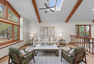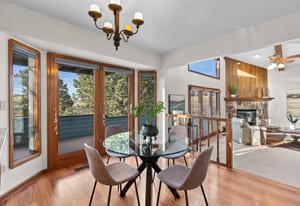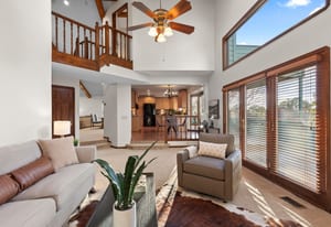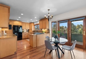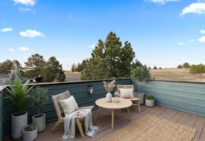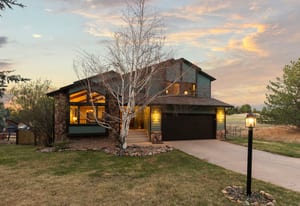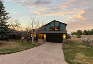 Perfectly positioned on a corner lot within the wildly popular Pinery subdivision lies 9655 Coronado Court- a 3,400+ sq.ft. walkout home where privacy, abundant natural light, & effortless living converge. Backing onto over 4 acres of open space, this home lives like a secluded retreat, offering an extraordinary sense of tranquility & refined living. From the moment you enter, soaring vaulted ceilings, rich exposed wood beams, & expansive skylights create an unforgettable first impression. The kitchen is both timeless & functional, featuring marble tile countertops, maple cabinetry, & soft-close drawers. It flows seamlessly into a charming breakfast nook and the inviting family room beyond, where a gas fireplace framed in stone and rich wood paneling anchors the space. An expansive covered redwood deck— accessible from both the kitchen & living room, extends the living experience outdoors and offers a seamless connection to the surrounding landscape. The large primary suite offers private deck access capturing sweeping mountain views & golden sunset skies. A spacious walk-in closet & spa-inspired en-suite bath w/ jetted tub create a serene, retreat-like experience. Two additional light-filled bedrooms with vaulted ceilings share a well-appointed hall bath, offering comfort & versatility. The walkout basement presents exceptional potential, with a roughed in bathroom for future customization. Thoughtful updates include new carpet, a new water heater, & a newer furnace & A/C, ensuring both comfort & peace of mind. A desirable south- facing orientation allows for effortless snowmelt, while an iron fence provides a secure & elegant space for your pets. Outdoors, the grounds offer charm & functionality with a greenhouse, a bird bath, & a beautifully usable landscape that blends seamlessly into the expansive open space beyond. Don't miss this rare opportunity to own a light-filled, architecturally rich home in one of Parker's most desirable communities!