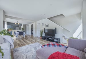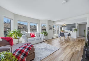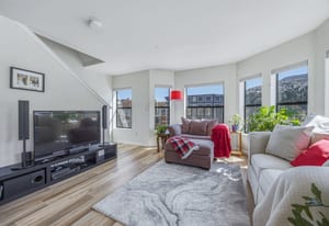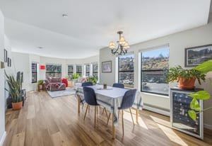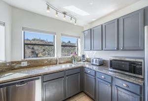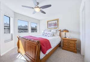 This deed-restricted home is a rarely available, spacious south-facing top-floor corner residence with abundant natural light and views toward Vail Mountain. The desirable corner location and top-floor setting create a bright and inviting living space. The home features a desirable two-level floor plan, with two spacious bedrooms upstairs, each with its own ensuite bath, plus a half bath on the main level for guests. Interior updates include new luxury vinyl flooring, granite kitchen countertops and updated electrical. Additional highlights include two unassigned underground parking spaces in the Riverwalk garage with elevator access, resident bike storage, and a private ski/storage locker located in the garage. Conveniently located in the Amber Building above Starbucks within the Riverwalk district, offering easy access to shops, dining, and everyday amenities. Call us for Deed Restriction details