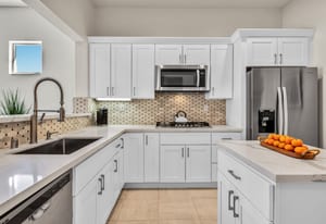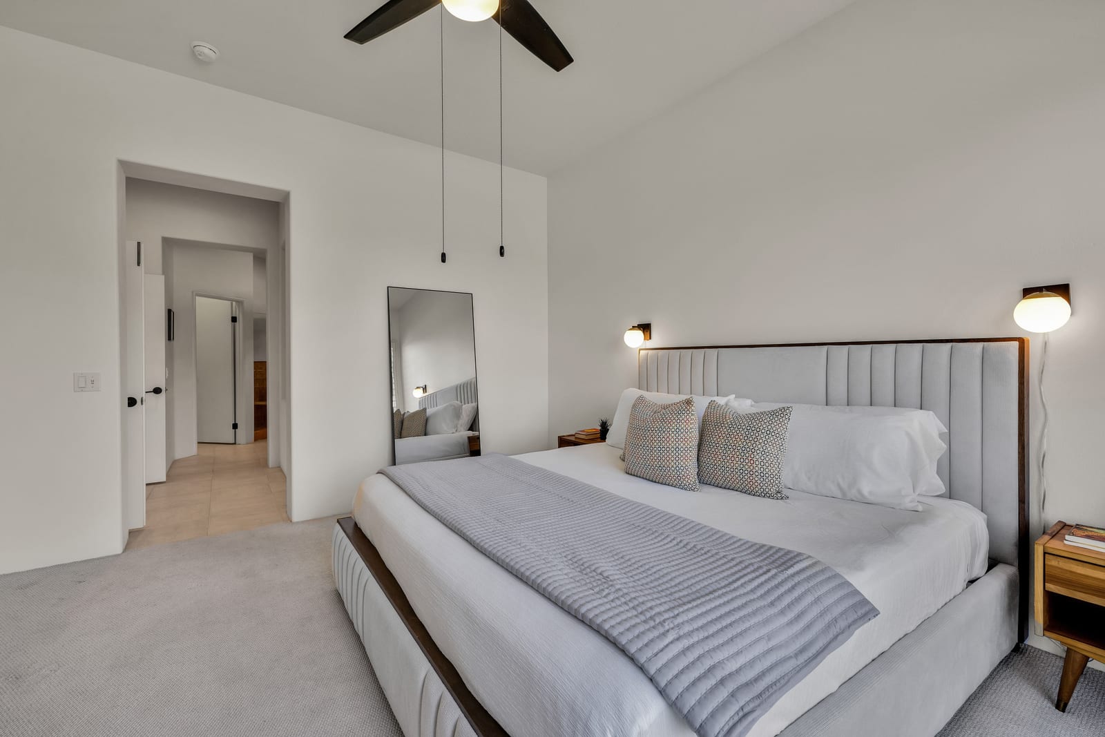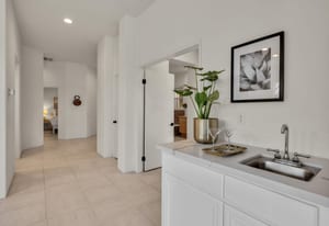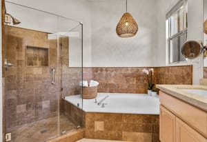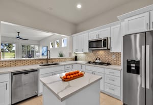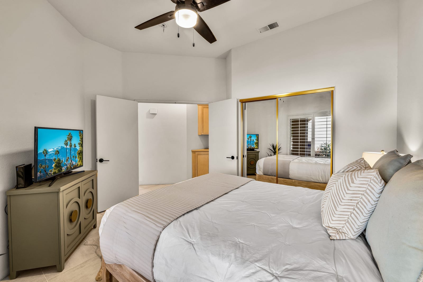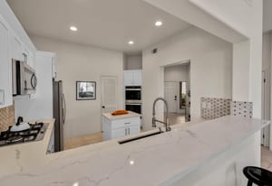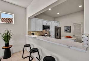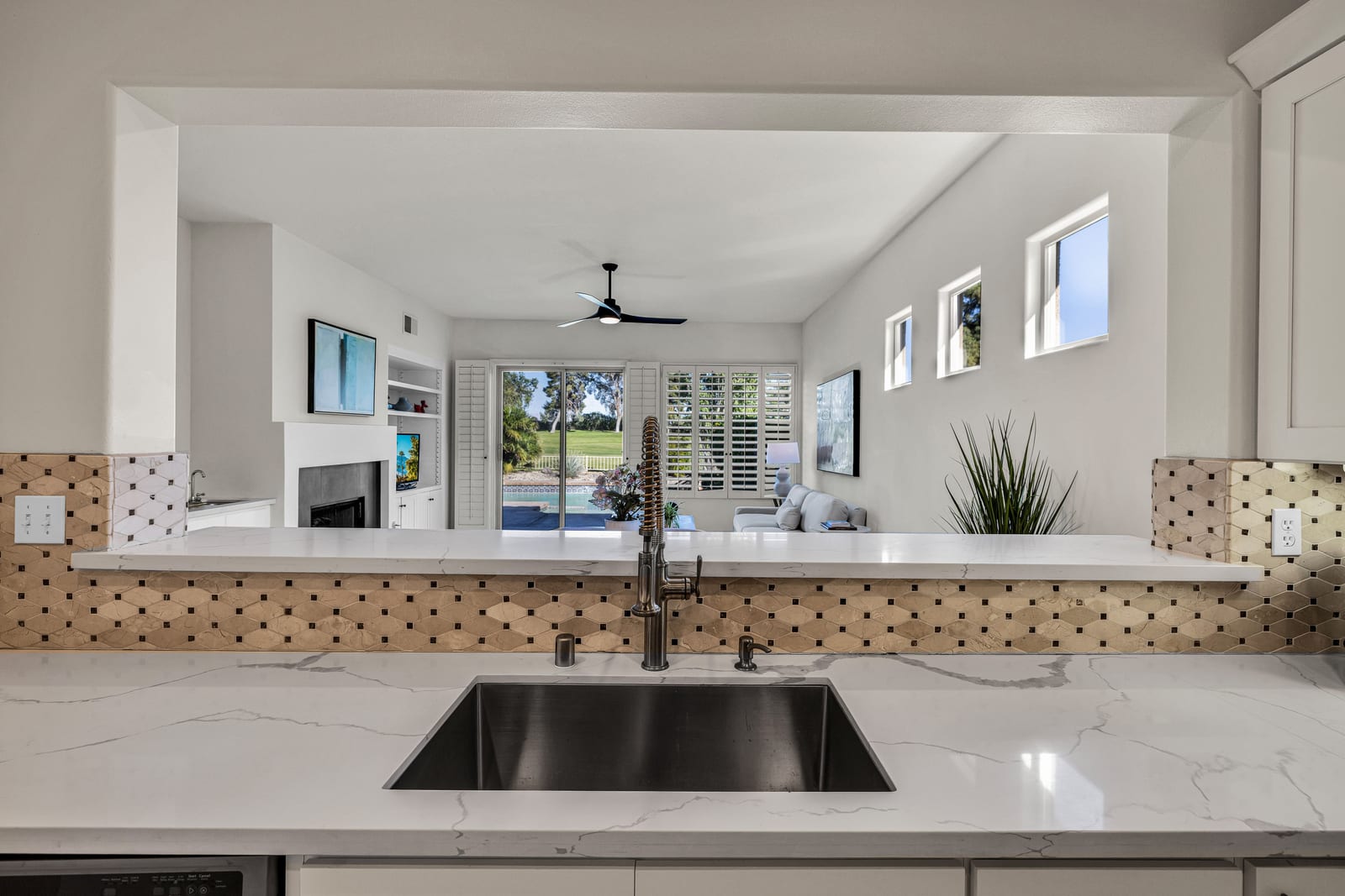 The updated kitchen includes new cabinetry, center island, breakfast bar, and walk-in pantry. The great room features a wet bar and modern slate fireplace, creating a stylish gathering space. The floor plan offers excellent bedroom separation for privacy, while the attached casita with private entrance is perfect for guests, a home office, or studio.