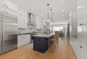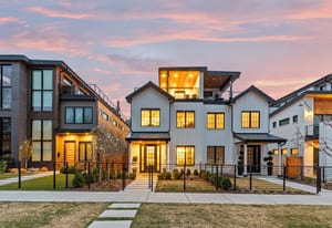This gracious townhome is located in the A+ best spot in Cherry Creek North, just minutes from all of your favorite restaurants and shops, yet nestled on a quiet block. In this better than new three year old MAG property, every finish was custom selected with style and an artistic eye by the current owners. The entire home is flooded with natural light from extra large windows. On one the most sought after blocks in Cherry Creek, this expansive nearly 4,000 square foot three bedroom home welcomes you with an open concept floor plan featuring rich hardwood floors, a sophisticated entry and a lovely dining room for entertaining. The dining room seamlessly connects to a gourmet kitchen with top tier appliances, including Subzero and Wolf appliances, quartz countertops and Carrera marble backsplash. The inviting living room draws you in with a fireplace and glass doors opening to the backyard. The indoor space flows to a private garden with a heated patio, an outdoor fireplace and a spacious seating area. The entire lot is professionally landscaped by Lifescape Colorado. An elevator takes you from the lower level to the second floor, which has two bedrooms. The generous main suite offers a spa-inspired five fixture bath. This serene retreat has an expansive shower, deep soaking tub and walk-in closet. The second bedroom includes an en suite bath with upgraded Sonoma custom tile, Carrera marble and a custom walk-in closet. The full floor office/flex third level has an indoor/outdoor fireplace, large deck and mountain views. The wet bar has a pass through to the deck. The lower level has been finished to the same high quality as the upper levels, with a bar including a full-sized Lieber refrigerator, temperature controlled wine cellar, family room, third bedroom and full bath. Upgrades include an Aquasana whole house water filtration system, custom shelving and closets. Too many upgrades to describe in this space! Every finish is top of the line. Move-in ready.