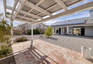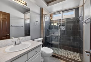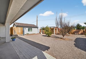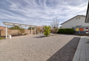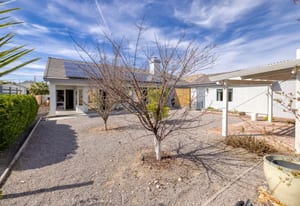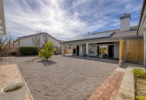 Beautifully appointed single-story home in a tranquil Northwest community. This inviting residence features an open-concept great room with fireplace flowing seamlessly into the formal dining area and a well-designed kitchen with modern appliances—ideal for everyday living and entertaining. The private retreat includes a spacious primary suite with en-suite bath and walk-in closet. Two guest bedrooms and their shared bathroom are tucked away from the primary suite; ensuring extra privacy for everyone. Situated on an expansive ¼-acre lot, the backyard offers a charming gazebo, mature fruit trees, and ample space to add a pool or spa. A notable additional amenity includes a second garage retrofitted as a non-permitted casita, perfect for guests, hobbies, or storage. Energy-efficient solar system adds value and reduced utility costs. Conveniently located near shopping, schools, houses of worship, and just a short drive to the Las Vegas Strip. A must-see property.