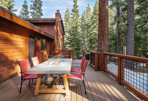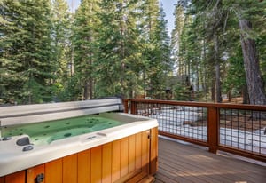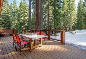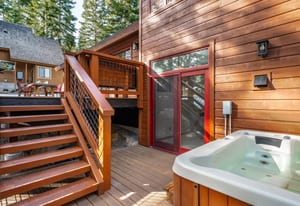 But the real star of the home is the expansive sun-drenched Trex deck. Accessed from three rooms, this outdoor living space becomes the hub of the home — perfect for summer dinners, morning coffee in the sunshine, or evening relaxation in the hot tub under Tahoe’s star-filled sky.