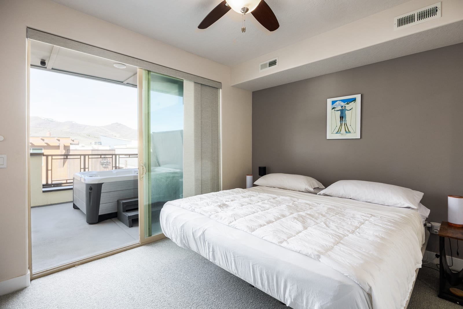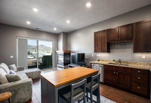 Experience the best of Park City in this beautifully positioned 2-bedroom, 2-bath Newpark Terrace townhome. As one of a rare 20% of units featuring dual-mountain vistas, this home captures unobstructed views of the Utah Olympic Park and Wasatch Mountains to the west, plus the Uinta Mountains and Swaner Nature Preserve to the east. Large sliding glass doors and windows with premium motorized blinds flood the open-concept living area with natural light. The thoughtfully designed layout features two private ensuite bedrooms, including a lower-level suite with direct patio access and pristine Olympic Park views. This tech-forward residence offers universal smart-home compatibility (Amazon, Google, ...