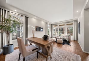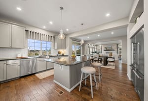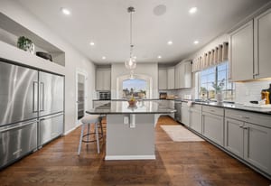 Positioned on a premier corner lot within the gated enclave of The Gallery at Reunion, this expansive residence by Oakwood Homes delivers over 5,100 square feet of thoughtfully designed living, seamlessly blending scale, comfort, and refined finishes against the backdrop of the golf course and Rocky Mountain horizon. Backing directly to Buffalo Run Golf Course, the home captures unobstructed views of rolling greens, protected open space, and Colorado’s iconic sunsets creating a setting that feels both private and expansive. The open-concept main level is designed for both everyday living and entertaining, featuring a chef’s kitchen with granite countertops, oversized island, stainless KitchenAid appliances, double refrigerator/freezer, and walk-in pantry. The kitchen flows seamlessly into the dining and living areas, anchored by a gas fireplace with custom tile surround and mantle, all enhanced by a built-in in-ceiling sound system. A spacious main-level office and powder bath add flexibility for remote work or guests. Upstairs, all four bedrooms are thoughtfully arranged alongside a large loft with accent wall, creating an ideal secondary living space, plus a conveniently located laundry room. The primary suite offers a five-piece bath and a massive walk-in closet, while three additional bedrooms share a well-appointed full bath. The unfinished basement provides significant opportunity for future expansion, whether for additional living space, recreation, or storage. The professionally landscaped, fully fenced backyard is designed for low-maintenance enjoyment, featuring a large concrete patio, built-in gas fire pit, hot tub, and unobstructed golf course views, perfect for relaxing or entertaining. Residents of Reunion enjoy access to pools, fitness center, parks, trails, lakes, coffee shop, and community events, all just minutes from DIA, shopping, and dining, offering a lifestyle of connection, convenience, and comfort.