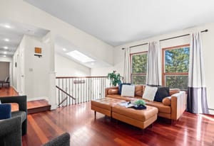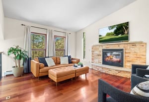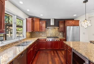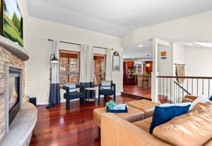 This home is comfortable and thoughtfully designed, featuring two bedrooms, kitchen, living room, laundry, & a primary suite on the main level, plus a bedroom & office/multi-purpose room and additional living/theater room on the lower level. The engineered hardwood cherry floors in the kitchen and living room, as well as the gas fireplace, give the home a warm feeling. The eat-in kitchen features granite countertops, bar top seating, an eat-in area, double ovens & a wine fridge. The master suite has charm & character with its angled ceiling, walk-out balcony & updated bathroom with vessel sinks & gorgeous glass walled shower. The back yard is perfect for entertaining, with a covered outdoor ...