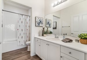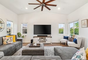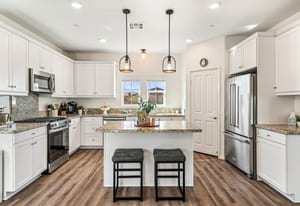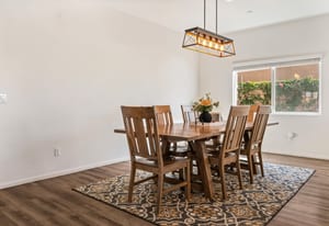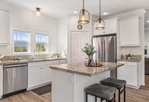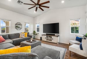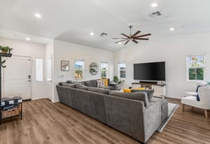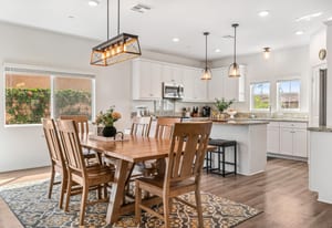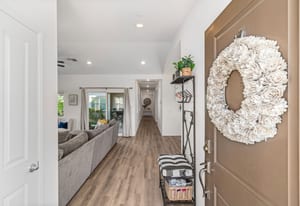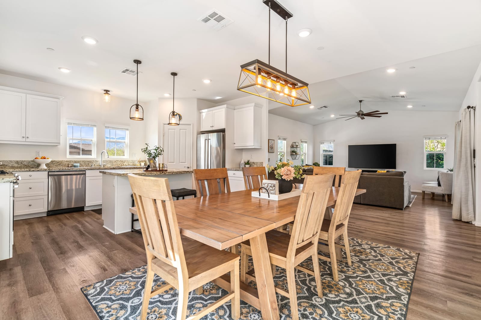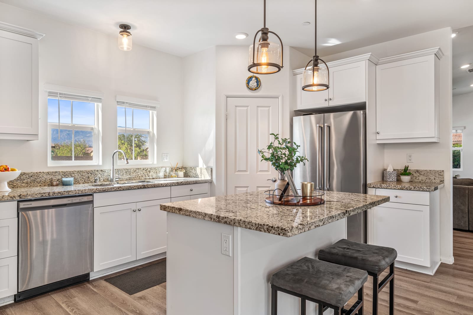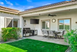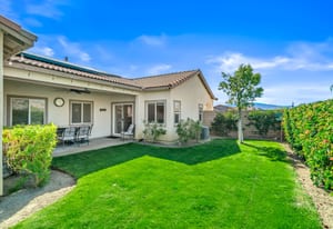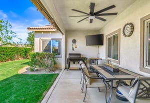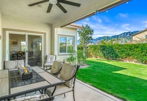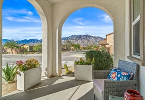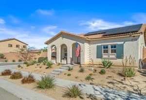 Located within the Verano community, this newer residence offers modern construction, mountain views, and a desirable corner-lot setting within one of the area's most thoughtfully planned neighborhoods. Built in 2019, the home incorporates contemporary finishes designed for both comfort and efficiency. Wood-look vinyl flooring runs throughout the primary living areas, complementing an open floor plan that connects the great room, dining area, and kitchen. The kitchen is designed with everyday function in mind, featuring white cabinetry, granite countertops with an island, stainless steel appliances, and generous prep space. The primary suite is spacious with natural light and an en-suite bathroom, while the guest bedrooms are ideally sized. A welcoming covered porch entry, large laundry room with additional storage, and attached garage add to the home's practical layout. Positioned on a corner location, the property enjoys open sightlines and surrounding mountain views. The property also has a solar system that has covered the usage very well for the current owners. Residents of Verano enjoy access to a central clubhouse with resort-style pool and spa, a fitness center, sport courts, playground areas, and more. Wide streets, landscaped paseos, and the surrounding San Jacinto and Santa Rosa mountain views contribute to the neighborhood's appeal for both full-time and seasonal residents.