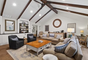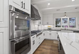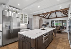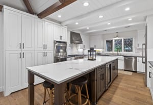 Step inside and you are greeted by high-end finishes, including wide-plank engineered wood flooring and a welcoming entry. The fully renovated kitchen is both stylish and functional, complete with professional-grade appliances, quartz countertops, and a generous island with ample seating.