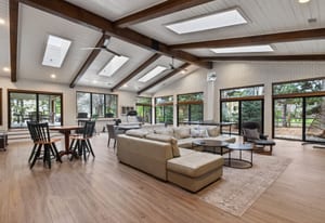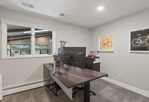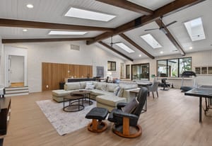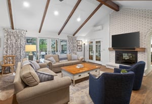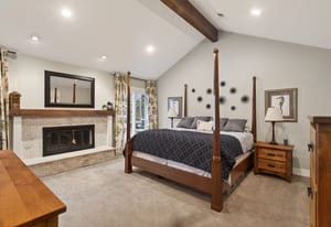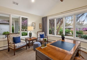 The primary suite offers a peaceful escape, featuring its own fireplace and a luxurious en-suite bath with dual vanities a tub and floor-to-ceiling shower. Two additional bedrooms and two office spaces are conveniently located on the main level.