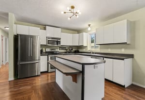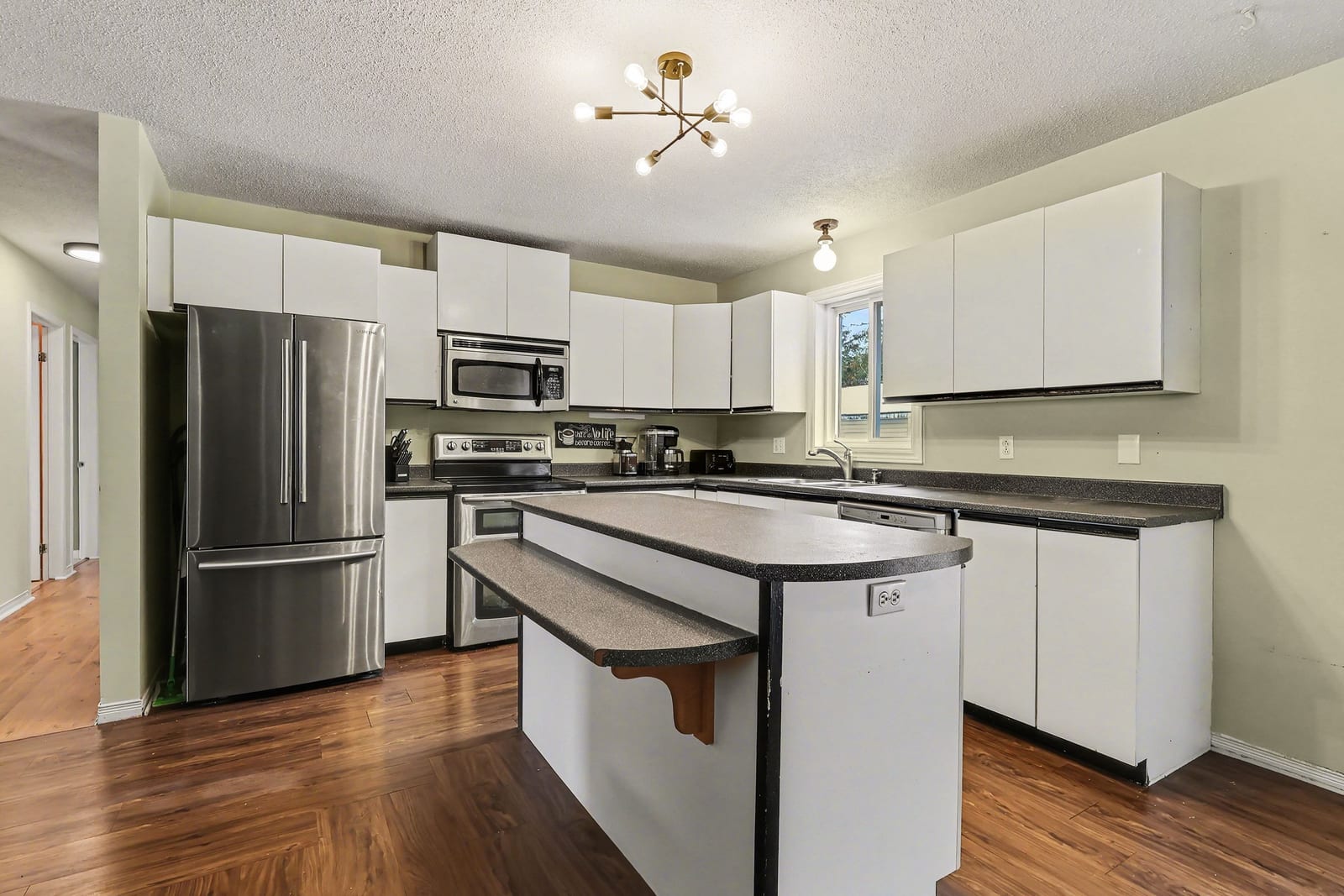 This well-maintained home offers 3+1 bedrooms and 2 full bathrooms, with a functional layout designed for everyday living. The main floor features a bright, open-concept kitchen and dining area with a large island, offering both convenience and plenty of workspace. The living room is filled with natural light thanks to a unique wall opening that enhances the sense of space and connection throughout.Three generously sized bedrooms and a full bathroom complete the main level.