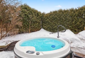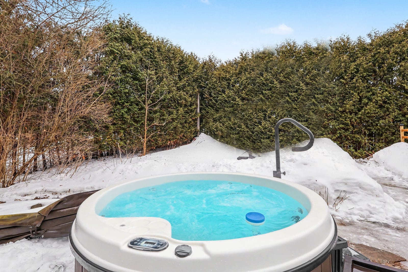 Step outside to enjoy the private, backyard lined with tall hedges, complete with a hot tub—your own outdoor retreat.