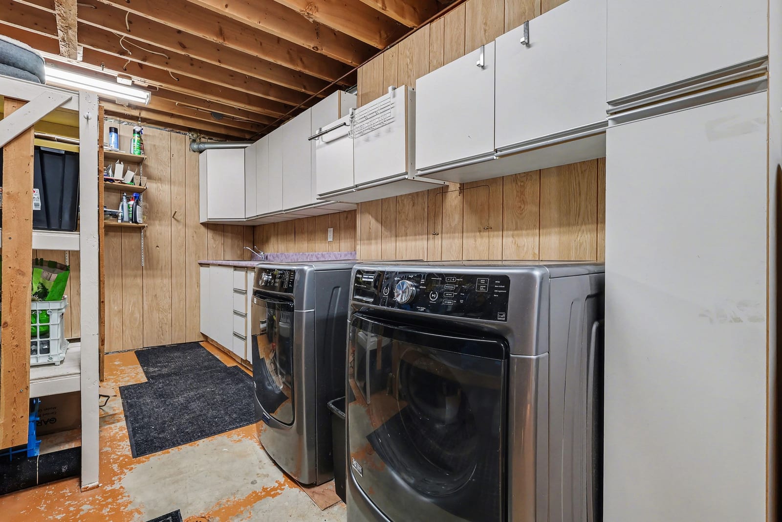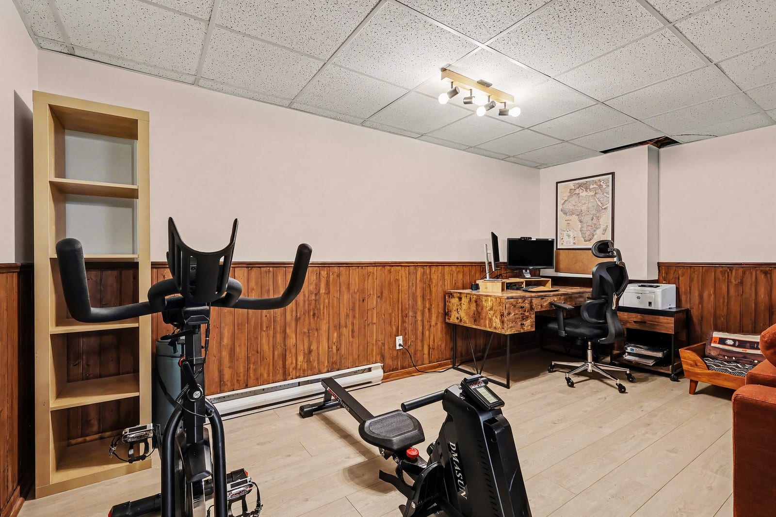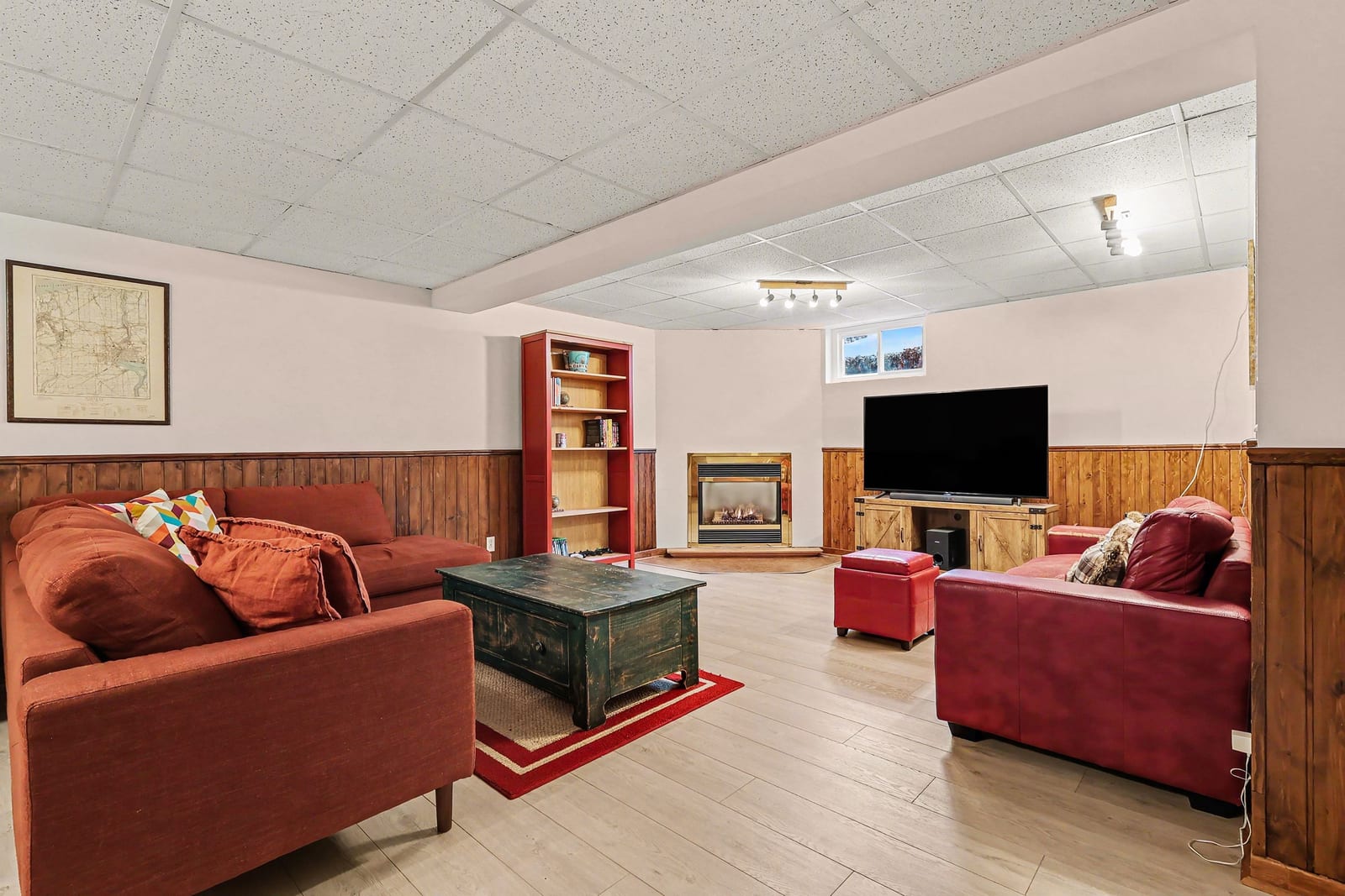 Downstairs, the fully finished basement adds valuable living space with a large rec room featuring a cozy gas fireplace, a spacious fourth bedroom, and a 3-piece bathroom. A huge laundry room and dedicated workshop area provide plenty of storage and flexibility.