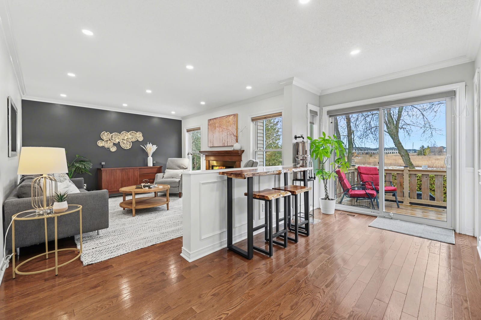 No rear neighbours, waterviews & greenspace, south-west backyard exposure, no Through Traffic. 4 + 1 bedrooms, 3.5 bathrooms, finished basement with full bathroom, ample storage, cozy wood burning fireplace, two-tiered deck, main floor laundry room, waterviews from main floor living room, kitchen and three of the five bedrooms. This is a stunning, elegant and beautifully maintained family home in the best location. Homes like this don't come around often. From the sophisticated main floor with formal living and dining, as well as family room and kitchen overlooking the pond, backyard with large deck and hot tub, to the cozy and spacious bedrooms on the upper level with two full bathrooms, and to the modern basement with rec room, oversized bedroom, full bathroom, storage and workshop area. This home has it all and actually ticks all the boxes!