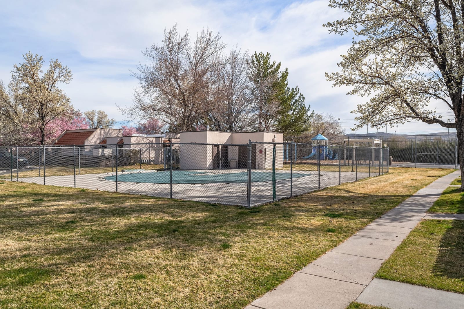 Rare, Single Story Condo! Experience the perfect blend of quiet comfort and total convenience. This bright 3-bedroom unit features an open floor plan. Step outside to your private fenced patio, shaded by mature trees, a perfect spot for morning coffee. Tucked away in a peaceful corner of the community, you have easy access to the pool, playground, and guest parking. Schools and shopping nearby.