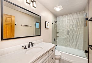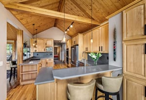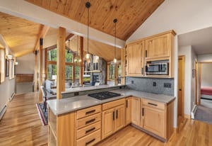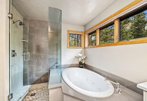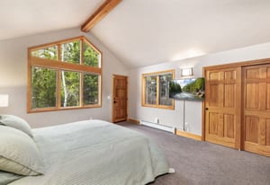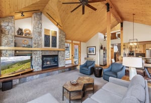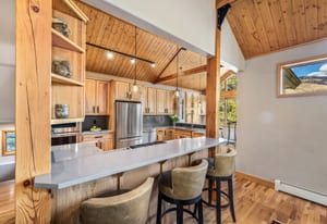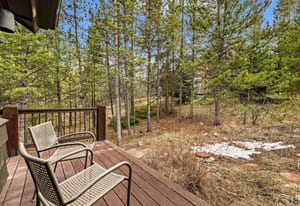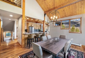 Beautifully updated 4-bedroom Eagles Nest home situated on a peaceful wooded lot with serene mountain views to the east. Relax and enjoy the private outdoor living spaces. Inside, the vaulted ceilings, floor-to-ceiling windows, exposed beams, stone fireplace, and strong natural light add to the allure of the open living area. The fireplace with a heated hearth creates a distinct focal point, designed for year-round use and comfort. The great room connects to the dining area, kitchen, and breakfast nook. Enjoy updated finishes throughout, including quartz countertops. Use the loft, currently a dedicated office, as your office, extra living space, or workout area. The four bedrooms include two gracious primary suites. The garage walks into a well-appointed room for storing outdoor equipment. Newer water heater, boiler, and exterior paint. Garage wired for EV charging. This home is located within the Raven Golf Club community at Eagles Nest, with easy access to not only golf, but also hiking trails. Silverthorne amenities are nearby, as well as the five world-class ski areas. Only 2.5 miles to the Dillon Reservoir and I-70.