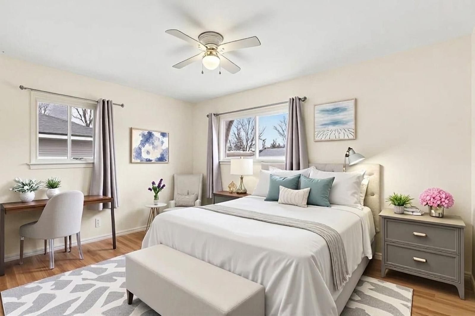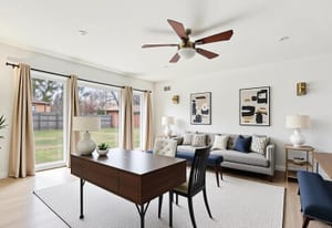 Sprawling brick ranch offering 4 bedrooms and 2.5 baths with approximately 1,800 sq ft. Spacious living room with a door wall to the patio overlooking a large backyard—great for relaxing or entertaining. Flexible floor plan includes a private bonus room off the living room, ideal for a home office, den, or 5th bedroom. Kitchen features white cabinetry and matching appliances, plus a bright dining area with a large window for natural light. Functional layout with laundry and half bath on one end, and 4 bedrooms with 2 full baths on the other. Freshly painted interior. Move-in ready with central air, Nest thermostat, security system, and a cedar closet. Convenient location near shopping, dining, and easy freeway access. Some photos are virtually staged.