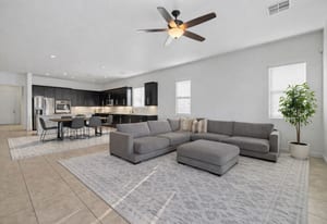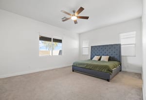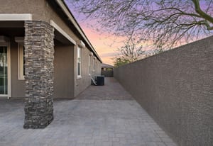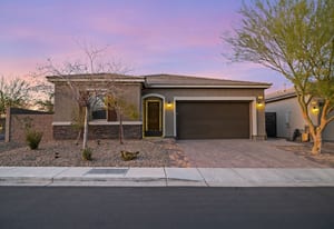 Exceptional single-story home in prime Southwest Las Vegas, located in a newer Richmond American community near shopping, dining, and quick access to the I-15 and 215. Situated on a premium corner lot with no rear neighbors, this property offers rare privacy and unobstructed views of the Las Vegas Strip and Mount Charleston, backing to a low-traffic end street. Features include a WiFi thermostat, smart garage, wired alarm system, pre-wired cameras, and high-speed fiber internet availability. The kitchen offers soft-close cabinetry and under-cabinet lighting. The primary suite includes a custom closet and spa-style dual shower. A fourth bedroom with ensuite bath and a dedicated office add flexibility. The fully landscaped backyard features turf, pavers, outdoor lighting, and a jacuzzi-ready setup. Additional highlights include Rolladen shutters, wrought iron entry gate, and EV charging capability.