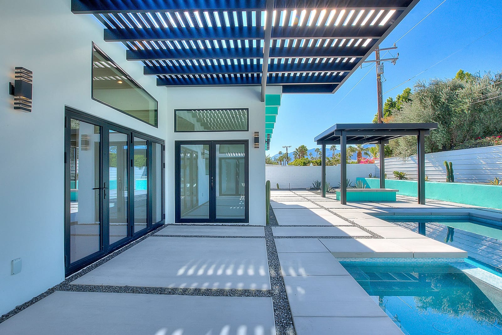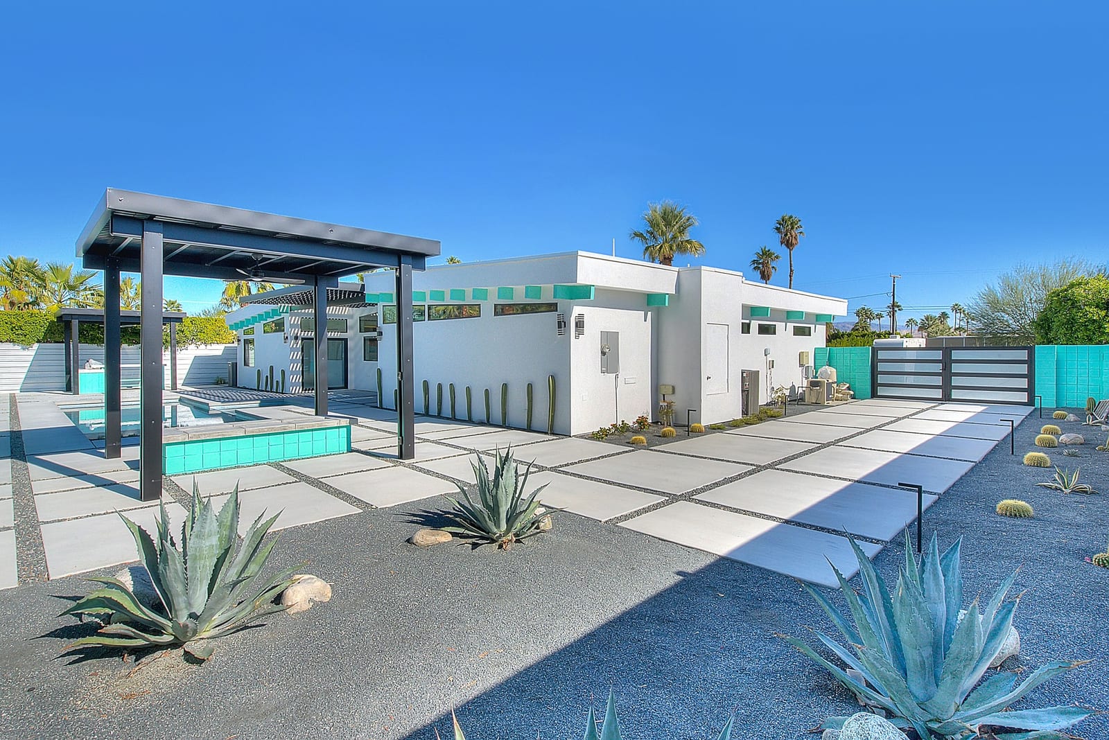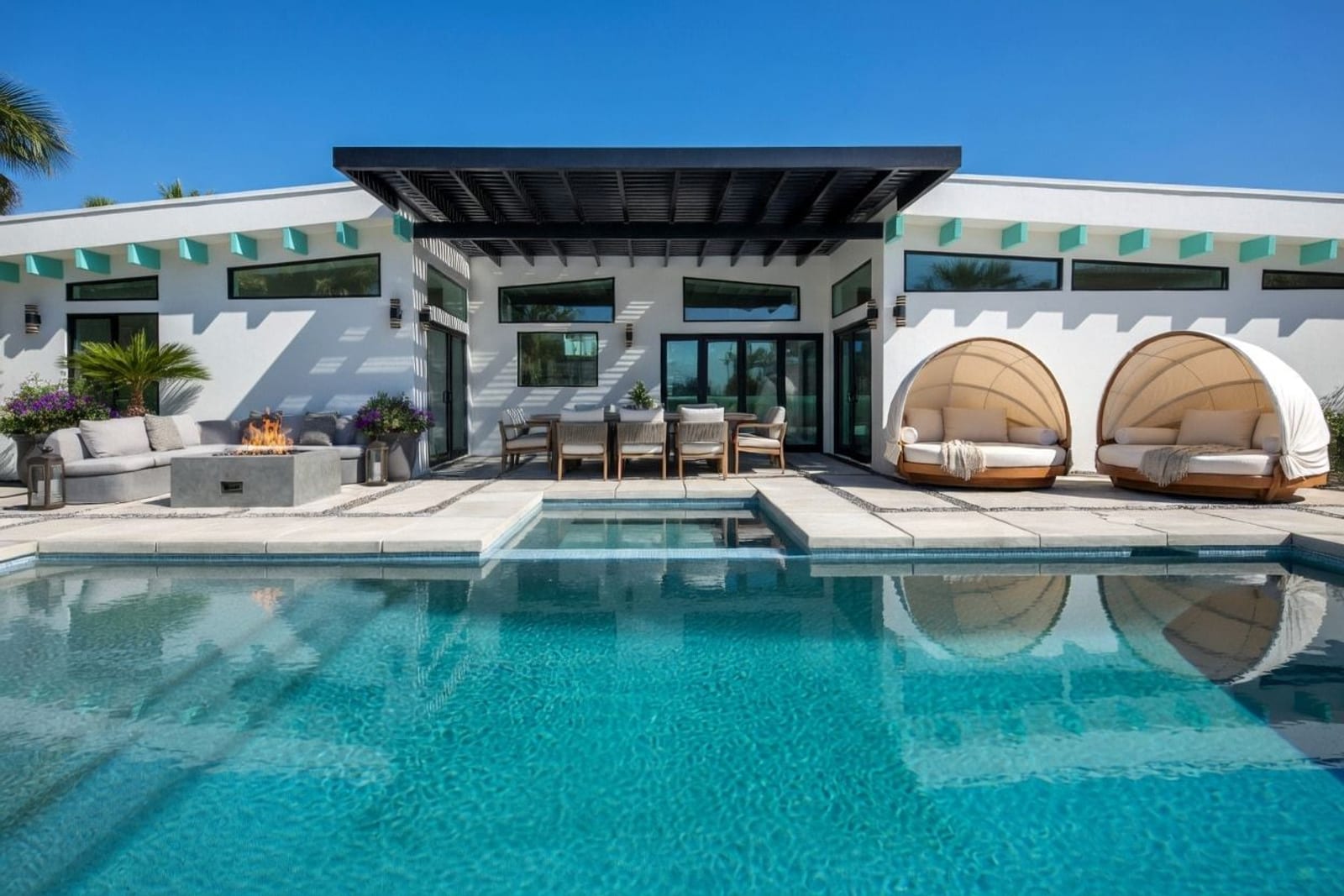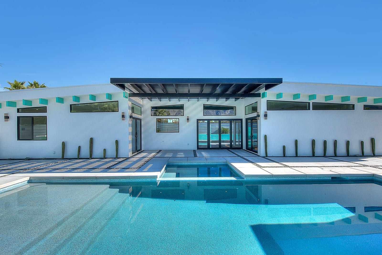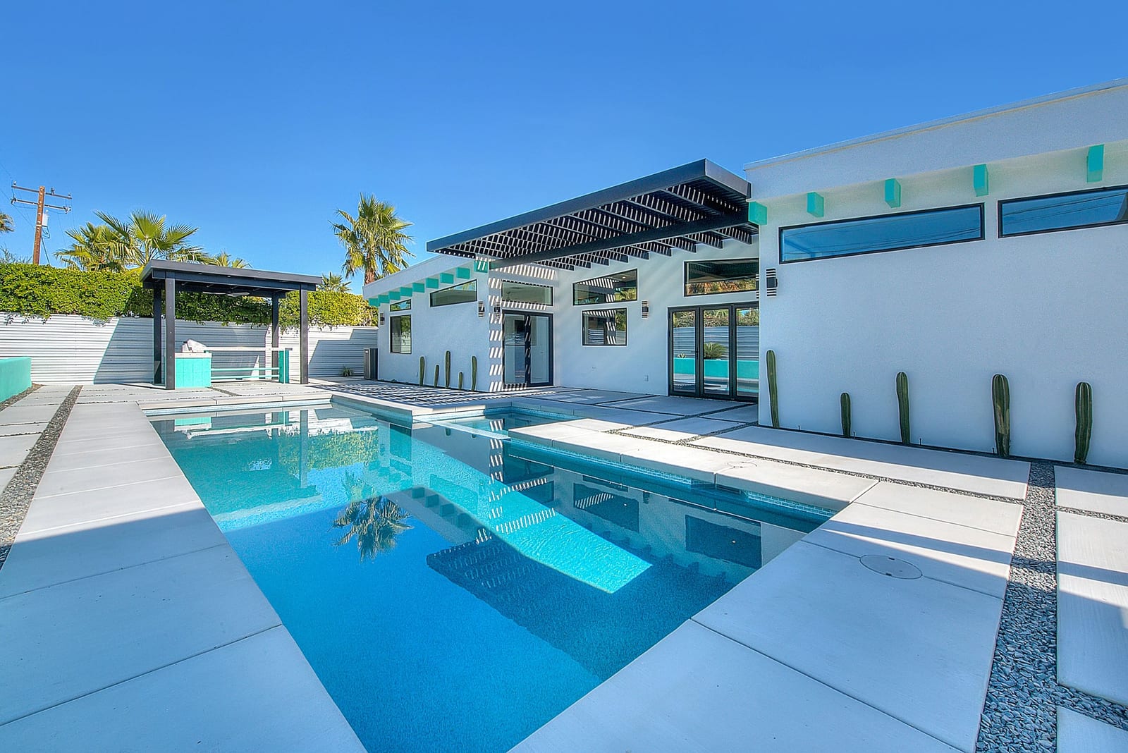 Step inside this gorgeous home and prepare to be impressed. This reimagined William Krisel-designed Alexander beauty truly has that WOW factor. Extensively remodeled and expanded while preserving its iconic mid-century modern architecture, this residence blends architectural pedigree with contemporary desert luxury. Walls of glass and folding patio doors frame dramatic mountain views and seamlessly connect the open-concept interior to the private resort-style backyard featuring a new pool with tanning shelf, spa, outdoor kitchen, and firepit. Highlights include a fully appointed attached ADU, RV parking with hookups, two-car garage, tankless water heater, whole-house water filtration, wine ...