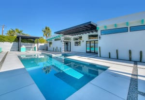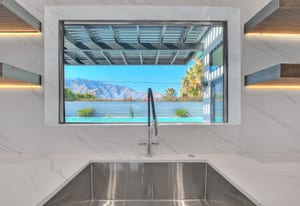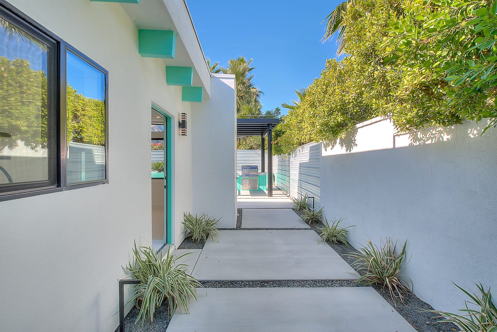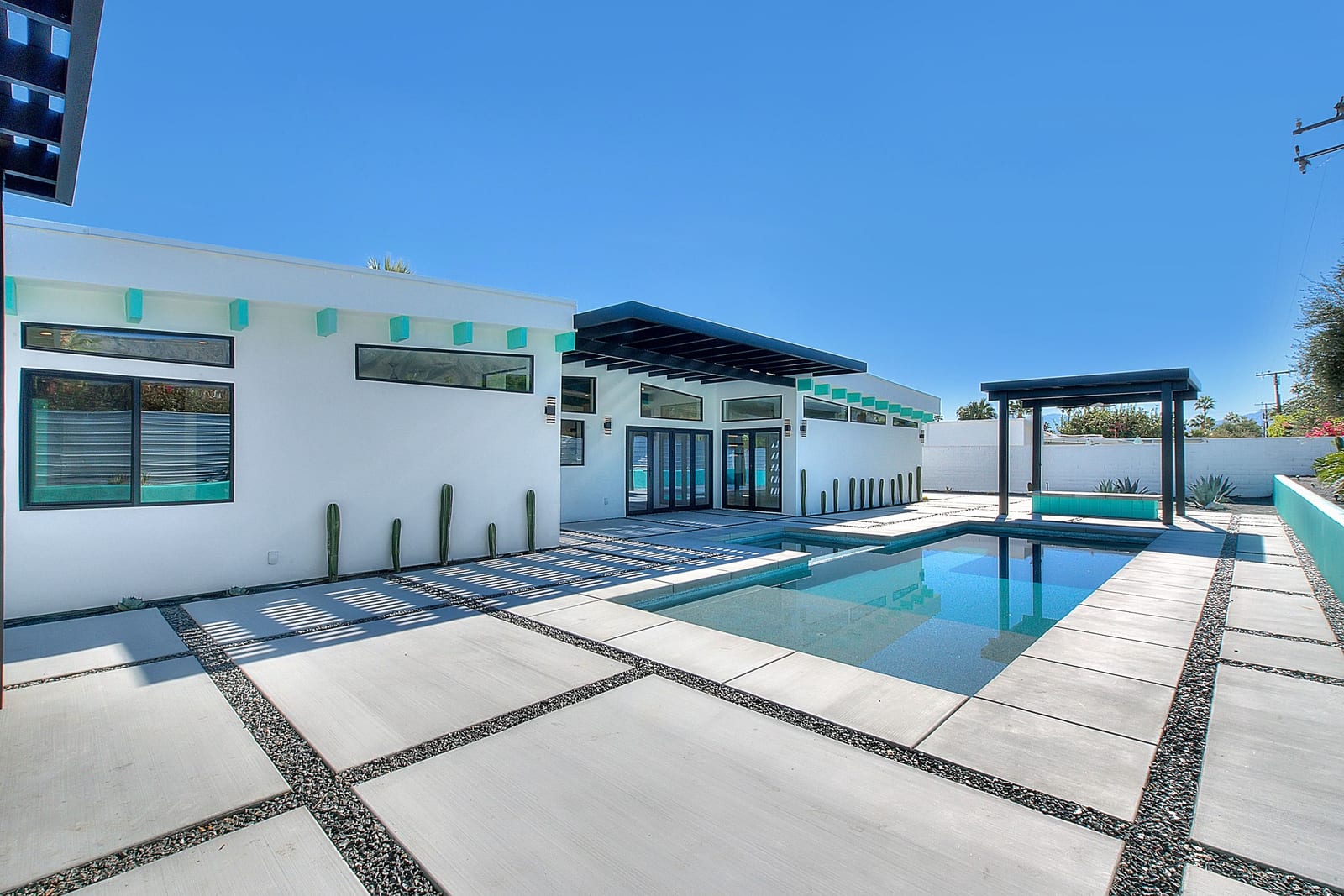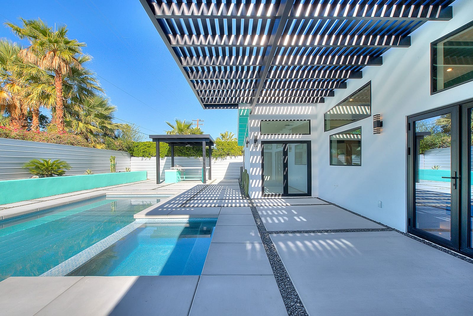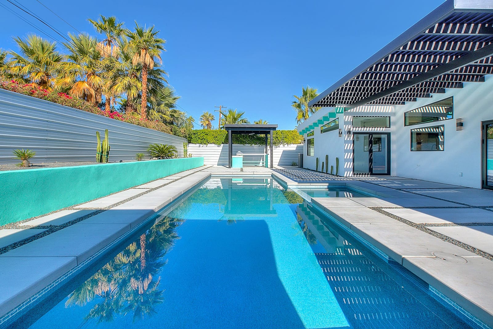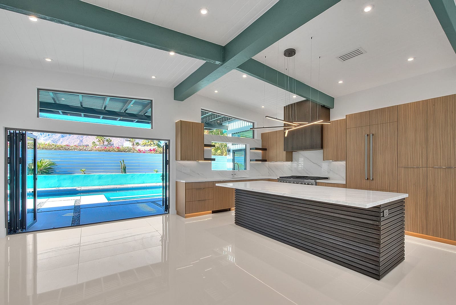 Step inside this gorgeous home and prepare to be impressed. This reimagined William Krisel-designed Alexander beauty truly has that WOW factor. Extensively remodeled and expanded while preserving its iconic mid-century modern architecture, this residence blends architectural pedigree with contemporary desert luxury. Walls of glass and folding patio doors frame dramatic mountain views and seamlessly connect the open-concept interior to the private resort-style backyard featuring a new pool with tanning shelf, spa, outdoor kitchen, and firepit. Highlights include a fully appointed attached ADU, RV parking with hookups, two-car garage, tankless water heater, whole-house water filtration, wine ...