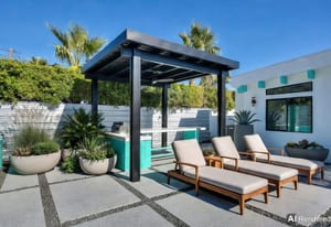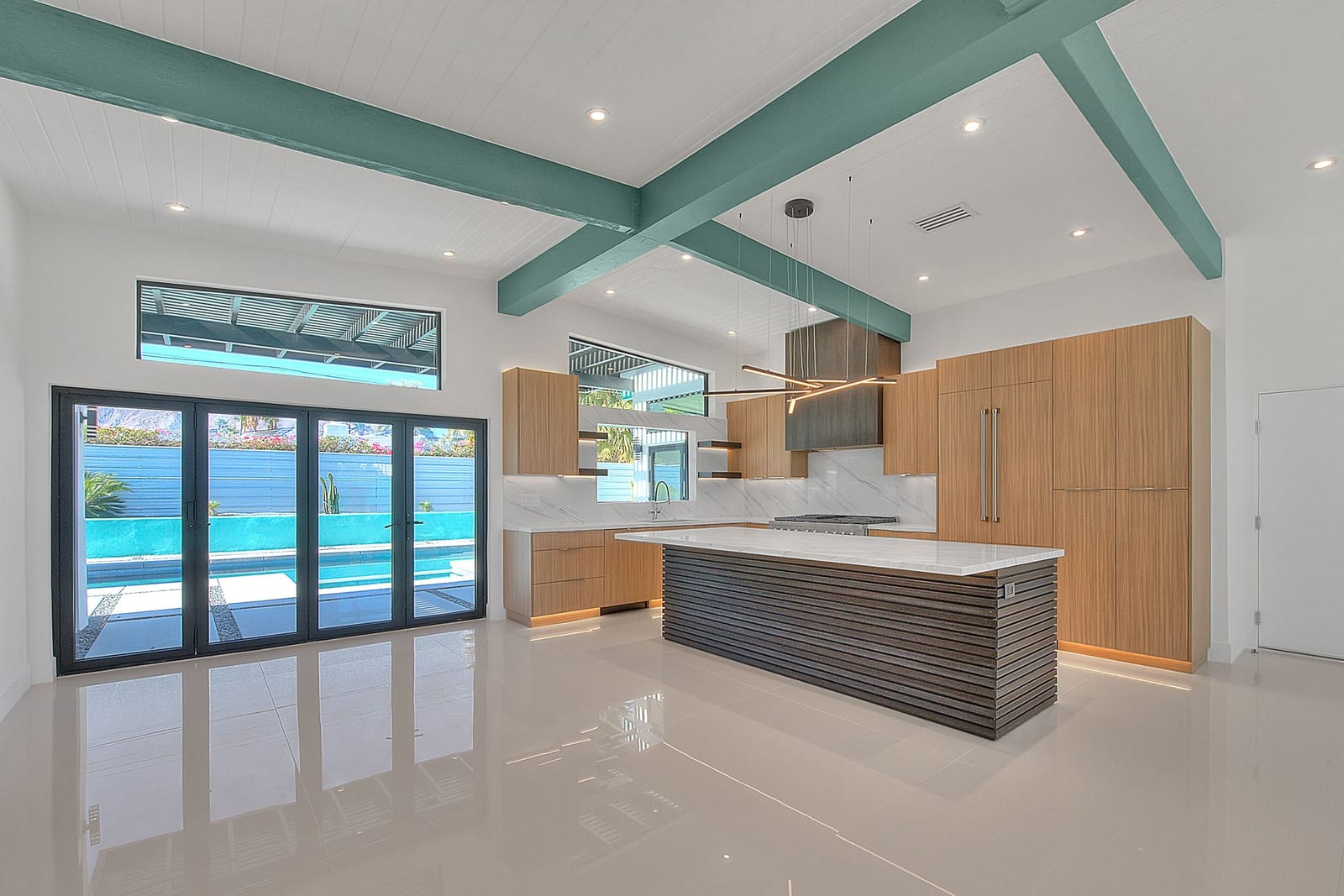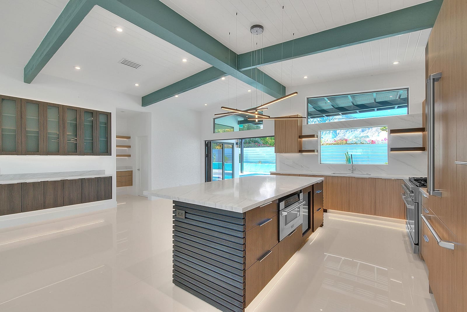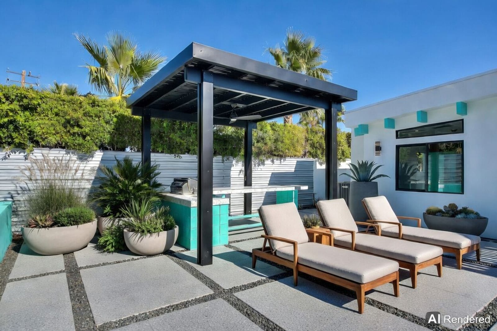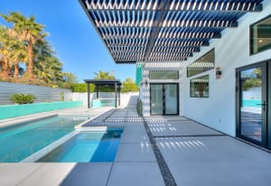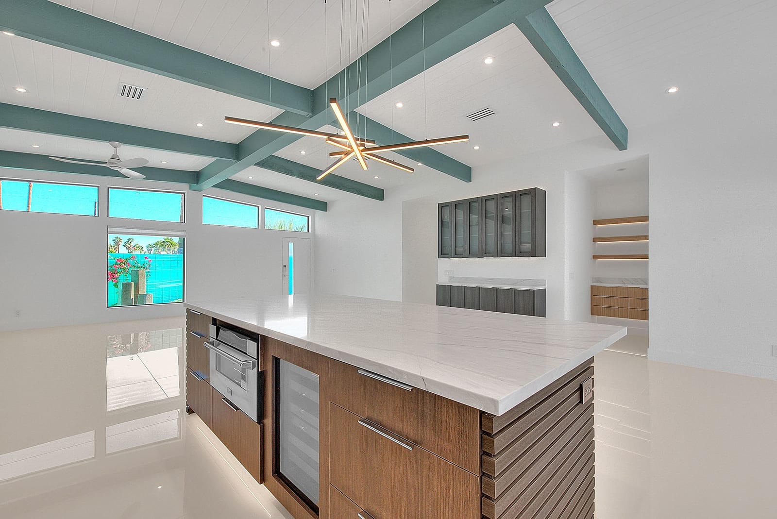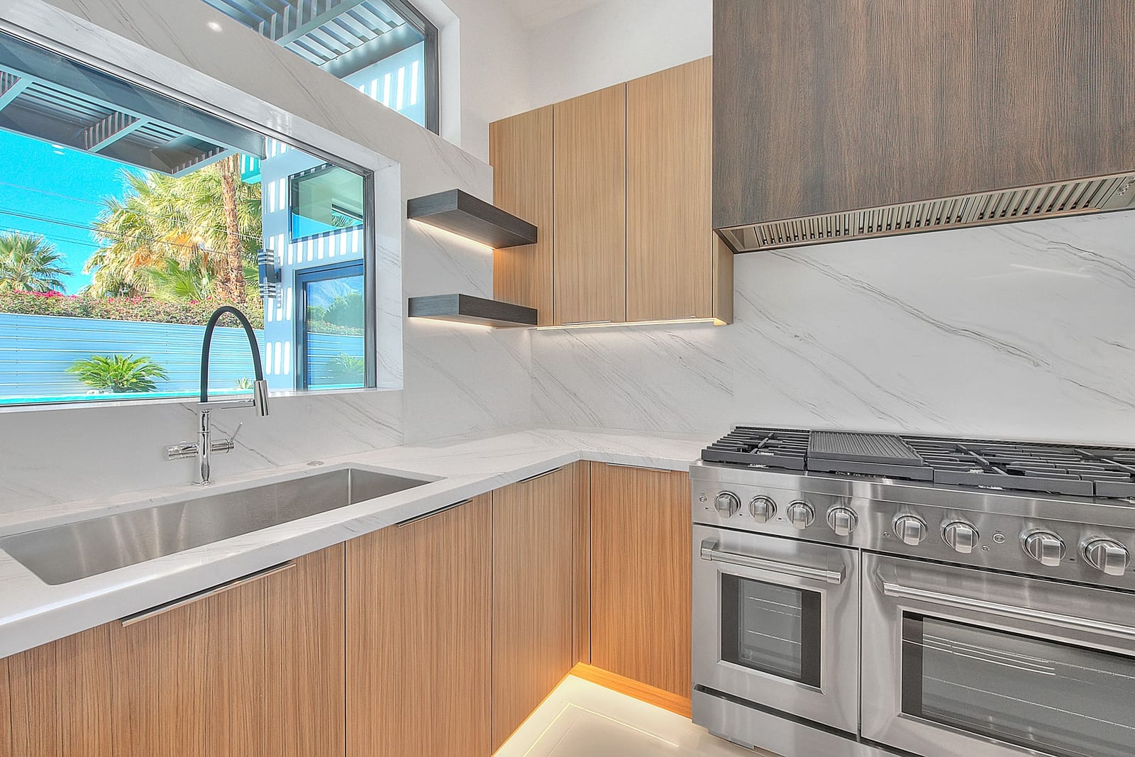 Step inside this gorgeous home and prepare to be impressed. This reimagined William Krisel-designed Alexander beauty truly has that WOW factor. Extensively remodeled and expanded while preserving its iconic mid-century modern architecture, this residence blends architectural pedigree with contemporary desert luxury. Walls of glass and folding patio doors frame dramatic mountain views and seamlessly connect the open-concept interior to the private resort-style backyard featuring a new pool with tanning shelf, spa, outdoor kitchen, and firepit. Highlights include a fully appointed attached ADU, RV parking with hookups, two-car garage, tankless water heater, whole-house water filtration, wine ...