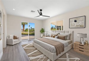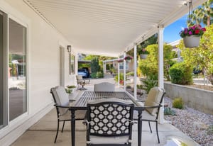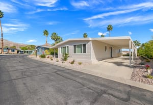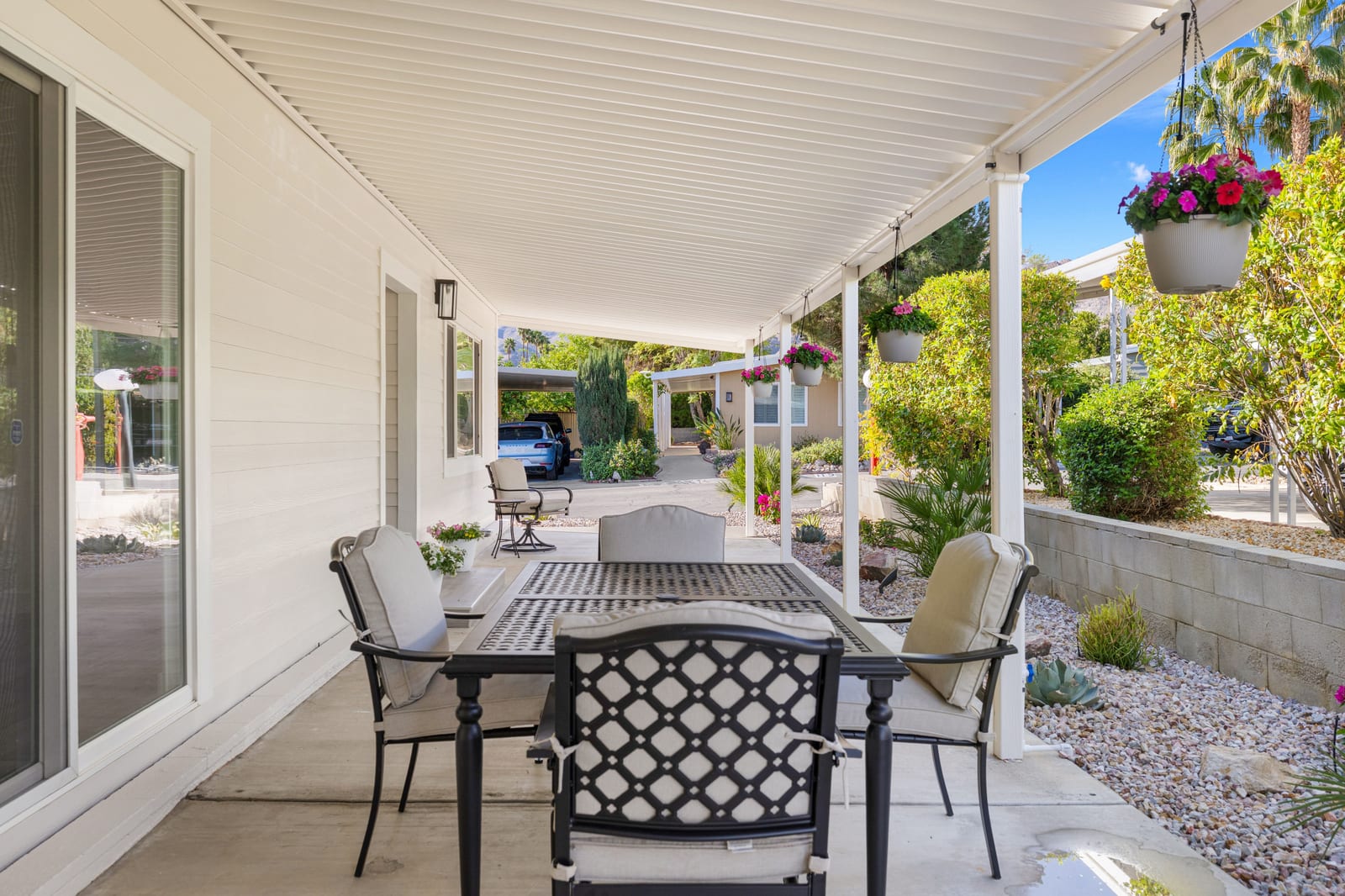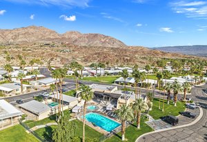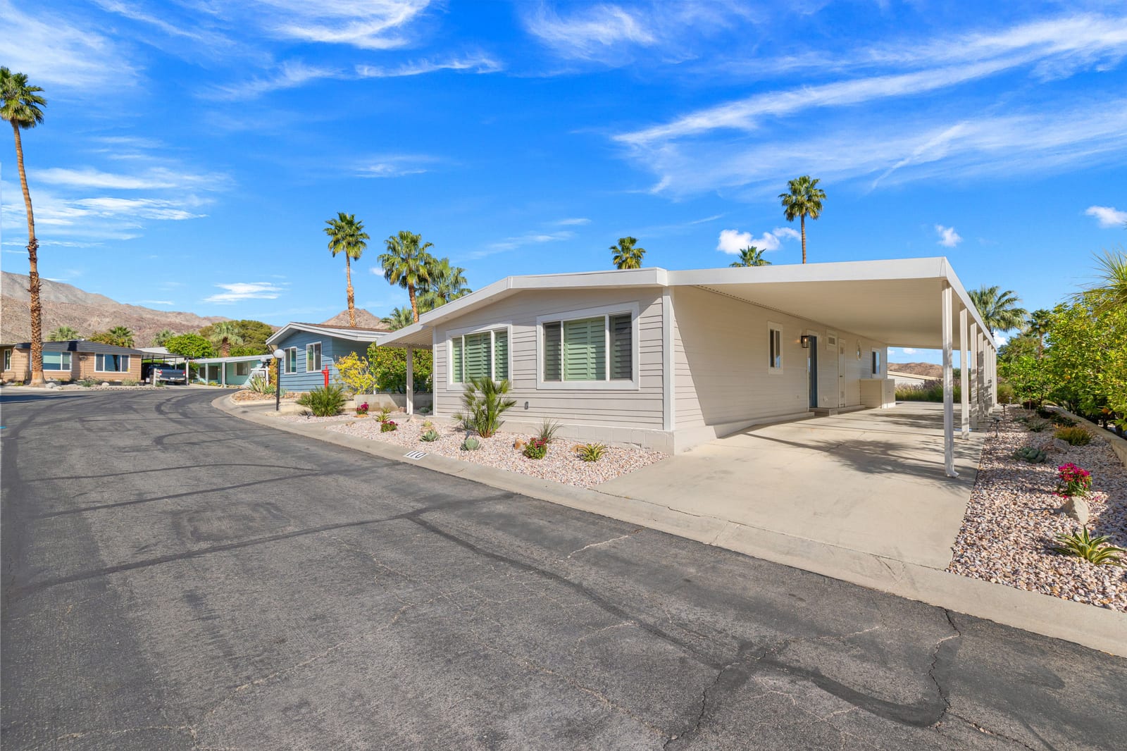 Welcome to Indian Springs, one of the desert's most desirable 55+ communities, where comfort, space, and lifestyle meld together beautifully. This exceptional and FULLY RENOVATED 2 bedroom, 2 bathroom home offers an impressive 1,536 sq. ft. of living space with views of Cahuilla Hills. Inside, you'll find a meticulously and attractive updated interior! Upgrades include all NEW paint, Luxury vinyl flooring, baseboards, cabinet finish, Quartz countertops, sinks, ALL new appliances, bathrooms, tile showers-pans-plumbing fixtures, rare upgraded drywall walls and finish, faucets, all new plumbing throughout, including new water heater, LED lighting and fixtures, new brushed nickel door hardware, and new quiet ceiling fans. Exterior upgrades include all new paint, exterior lighting landscape and irrigation! There are several private patio areas designed to capture the beauty of the surrounding sky and mountain views. These outdoor spaces create the perfect setting for morning coffee, sunrises, sunsets, or entertaining friends. Indian Springs community residents enjoy a peaceful environment while located conveniently close to shopping, dining, golf, and all the amenities the desert has to offer. On-site management, social room and community pool/spa are all just steps away. The space rent includes water, sewer, and trash services, offering added value and predictable monthly expenses. The end result is a spacious, move-in ready home with flexible living space, exceptional outdoor areas, enhanced privacy, and mesmerizing mountain views in one of the area's most sought-after active adult communities. Photos are virtually staged.