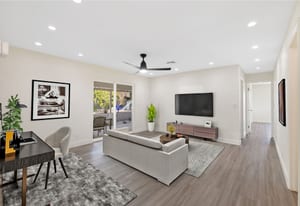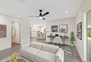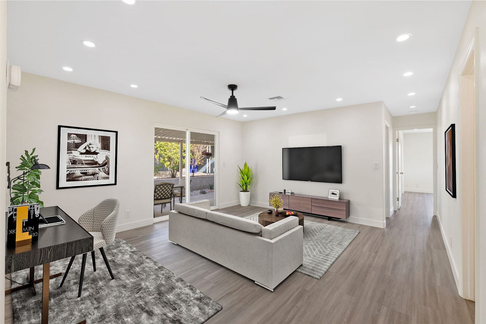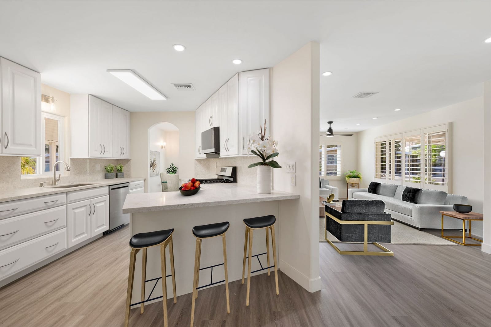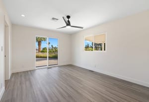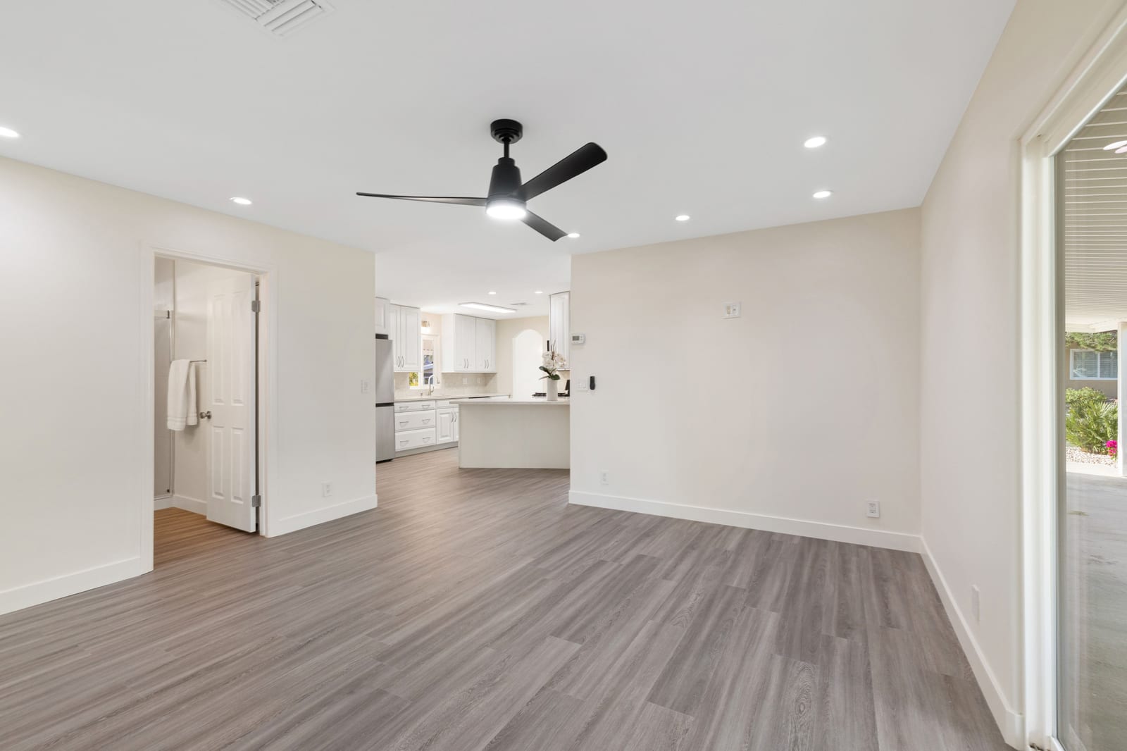 Welcome to Indian Springs, one of the desert's most desirable 55+ communities, where comfort, space, and lifestyle meld together beautifully. This exceptional and FULLY RENOVATED 2 bedroom, 2 bathroom home offers an impressive 1,536 sq. ft. of living space with views of Cahuilla Hills. Inside, you'll find a meticulously and attractive updated interior! Upgrades include all NEW paint, Luxury vinyl flooring, baseboards, cabinet finish, Quartz countertops, sinks, ALL new appliances, bathrooms, tile showers-pans-plumbing fixtures, rare upgraded drywall walls and finish, faucets, all new plumbing throughout, including new water heater, LED lighting and fixtures, new brushed nickel door hardware, and new quiet ceiling fans. Exterior upgrades include all new paint, exterior lighting landscape and irrigation! There are several private patio areas designed to capture the beauty of the surrounding sky and mountain views. These outdoor spaces create the perfect setting for morning coffee, sunrises, sunsets, or entertaining friends. Indian Springs community residents enjoy a peaceful environment while located conveniently close to shopping, dining, golf, and all the amenities the desert has to offer. On-site management, social room and community pool/spa are all just steps away. The space rent includes water, sewer, and trash services, offering added value and predictable monthly expenses. The end result is a spacious, move-in ready home with flexible living space, exceptional outdoor areas, enhanced privacy, and mesmerizing mountain views in one of the area's most sought-after active adult communities. Photos are virtually staged.